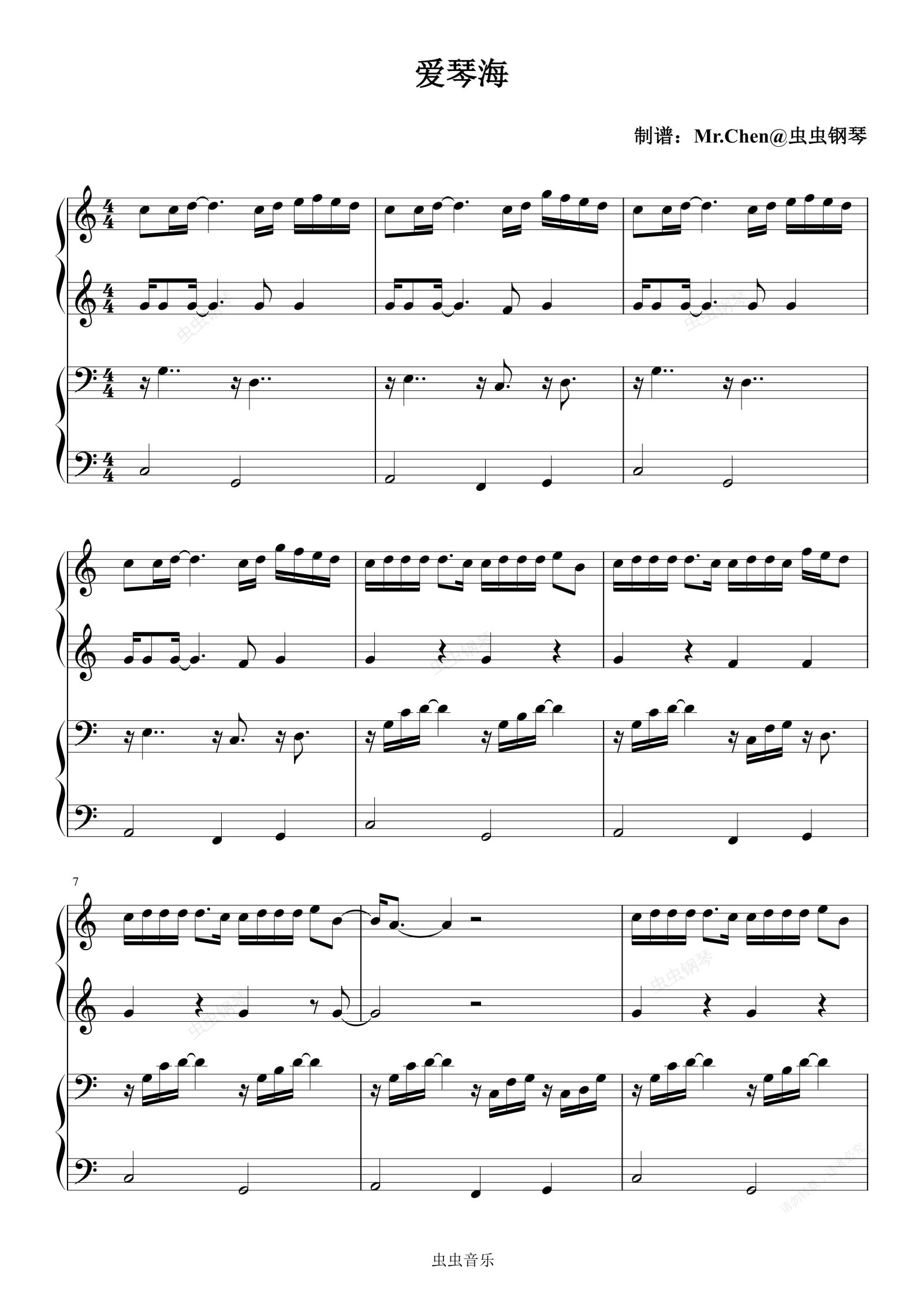 钢琴谱:爱琴海 (四手联弹)C调 - 周杰伦