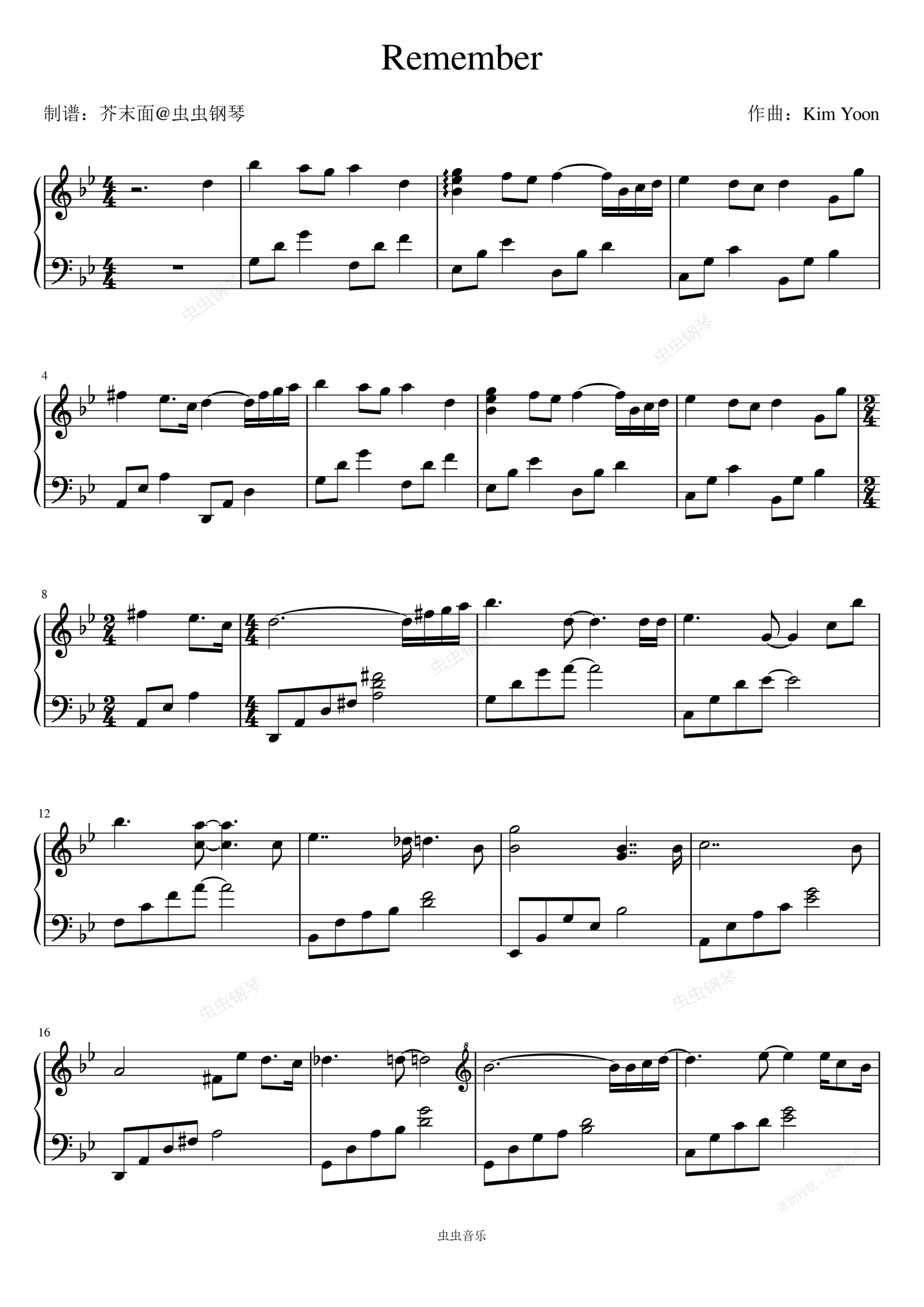 钢琴谱:Remember