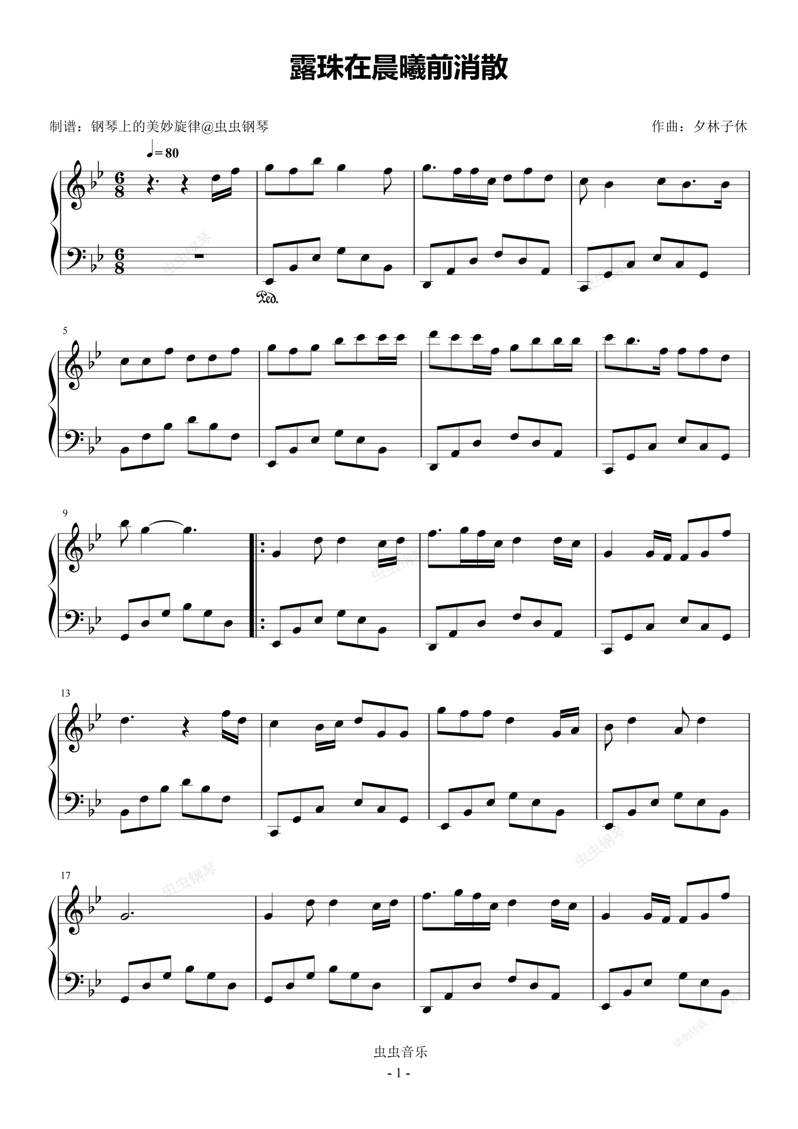 钢琴谱:露珠在晨曦前消散 原调简易版 鞠婧祎 月鳞绮纪