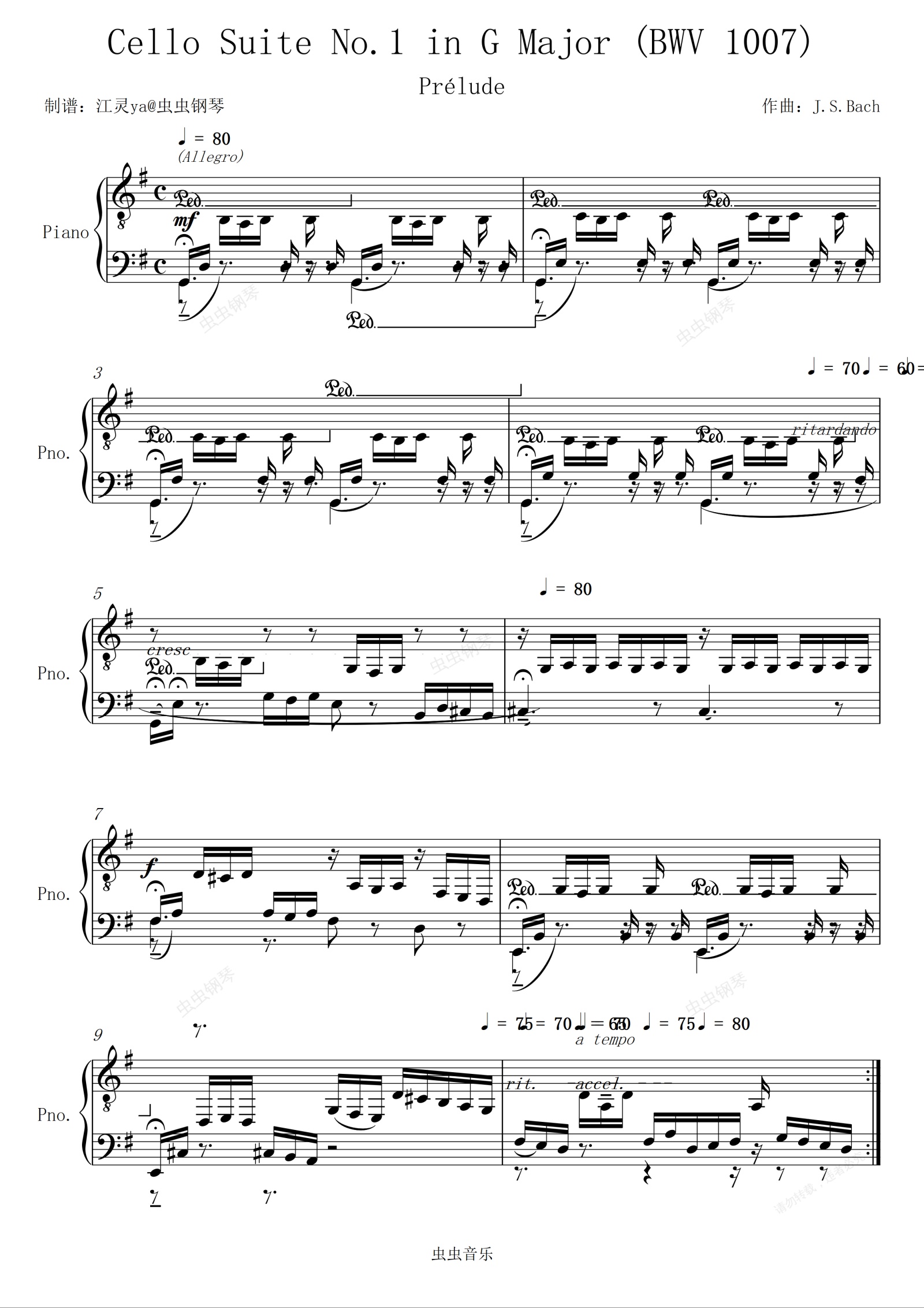 钢琴谱:Cello Suite No.1 in G Major (BWV 1007)