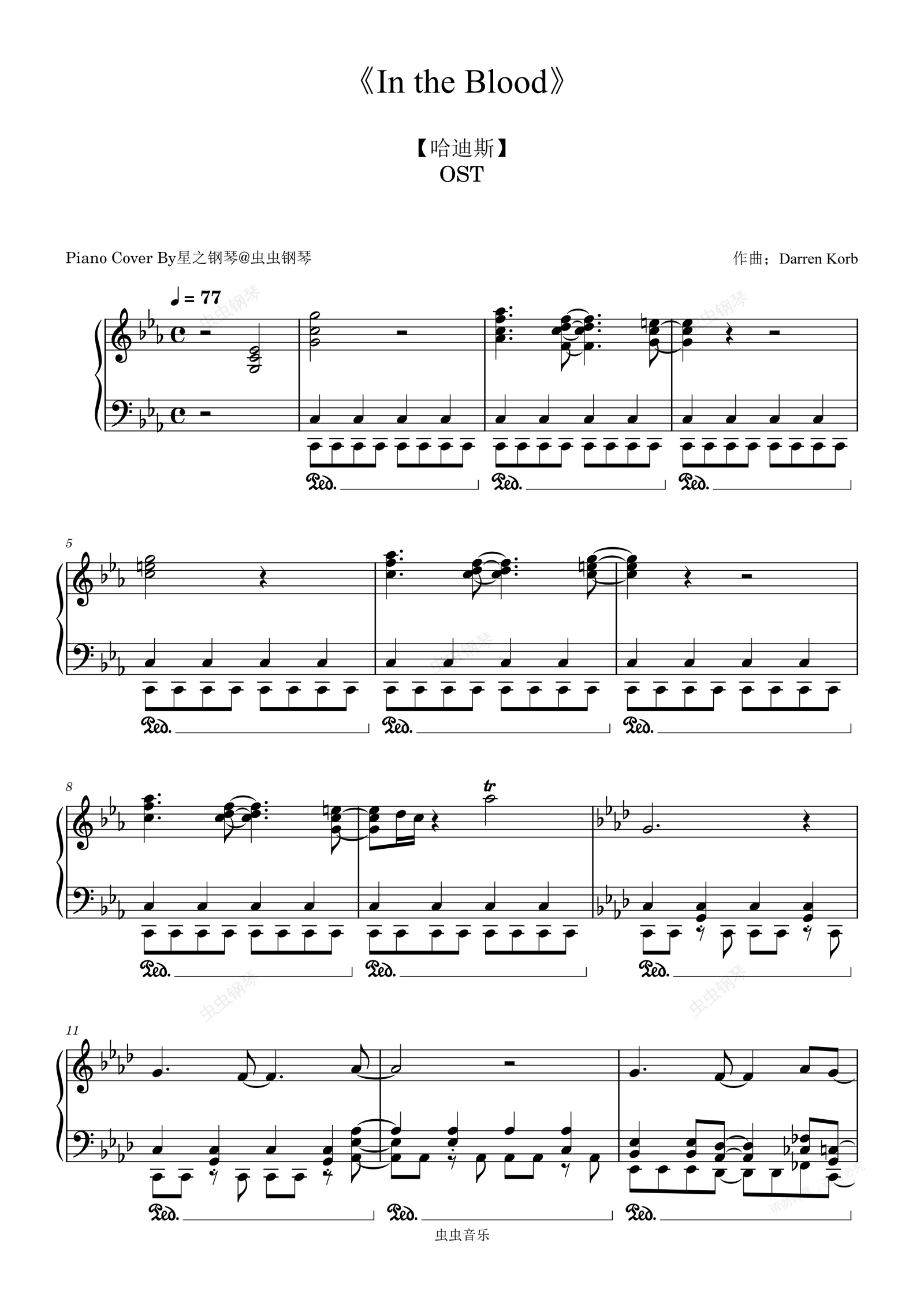 钢琴谱:【哈迪斯】《In the Blood》还原钢琴谱~星之钢琴~