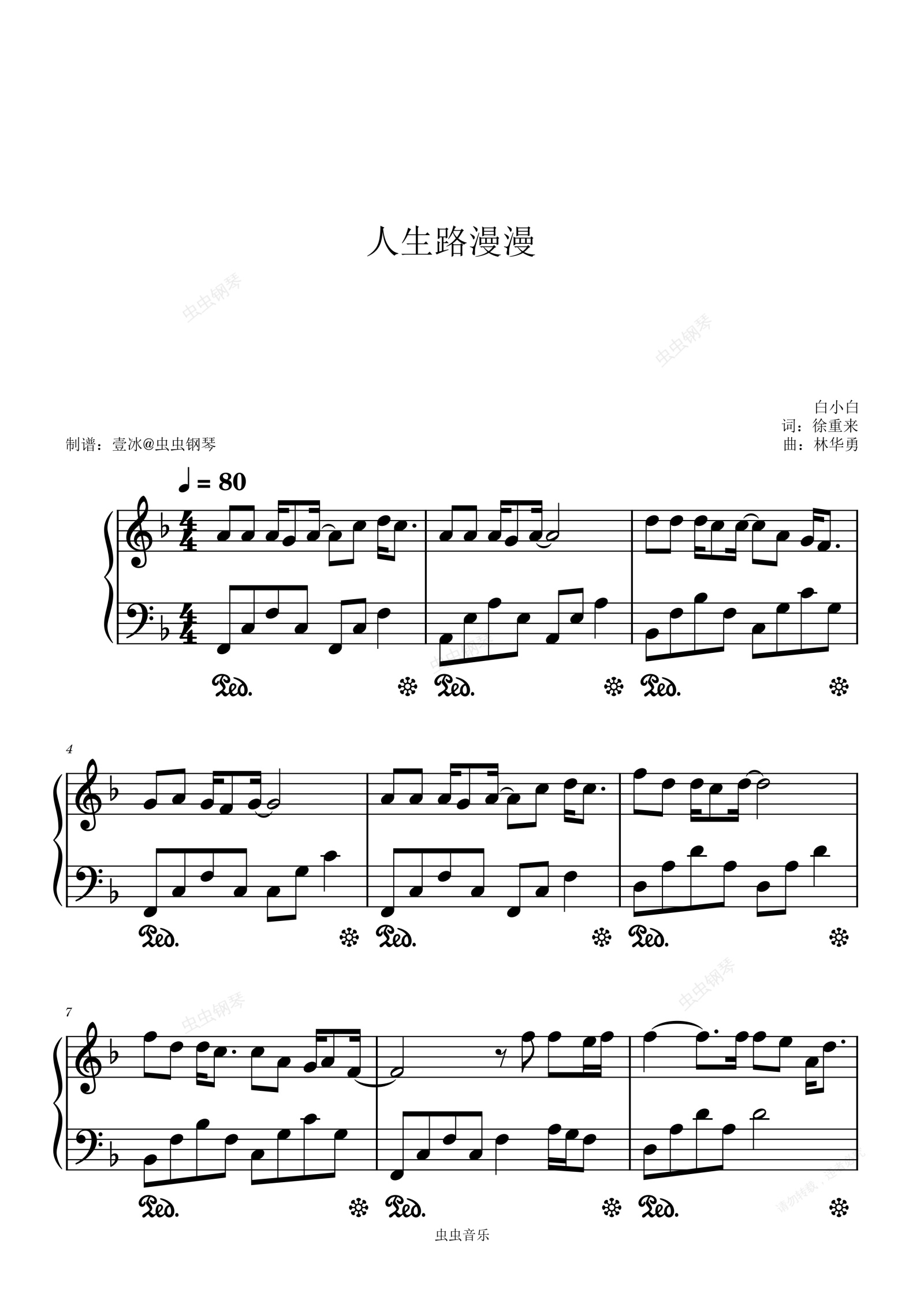 钢琴谱:人生路漫漫 - 白小白 原调