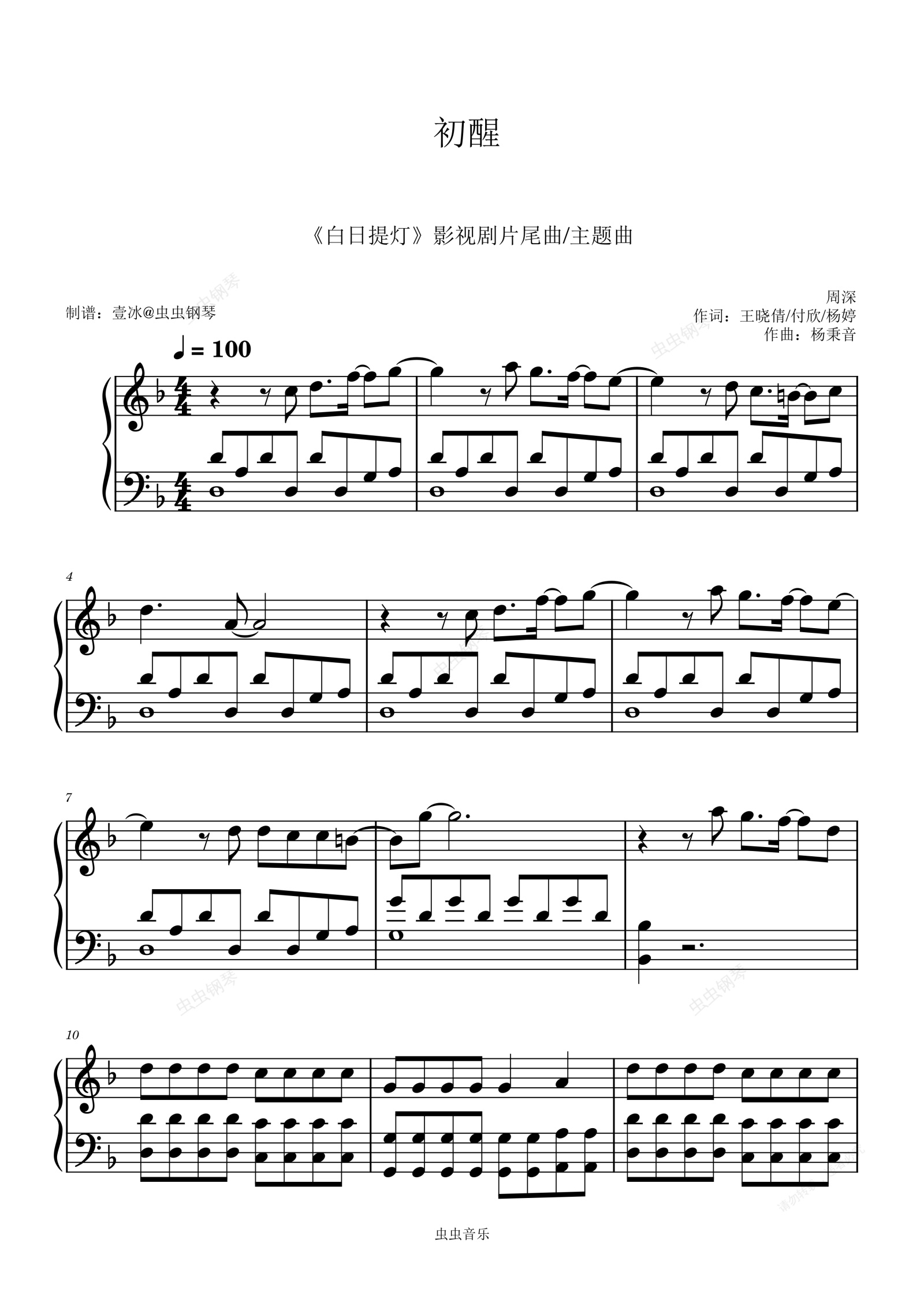 钢琴谱:初醒 (《白日提灯》影视剧片尾曲/主题曲) - 周深 原调