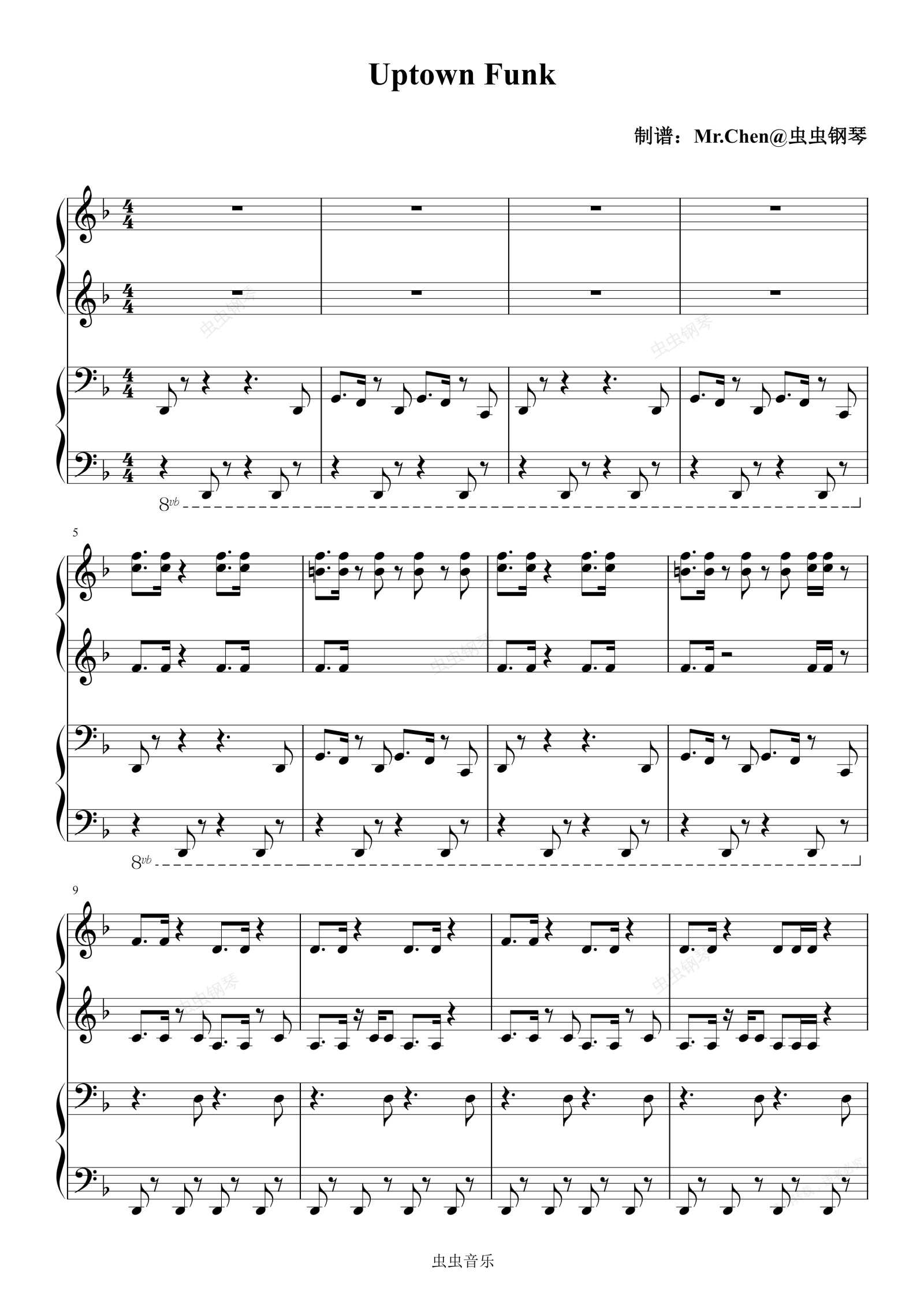 钢琴谱:Uptown Funk (四手联弹)- Bruno Mars