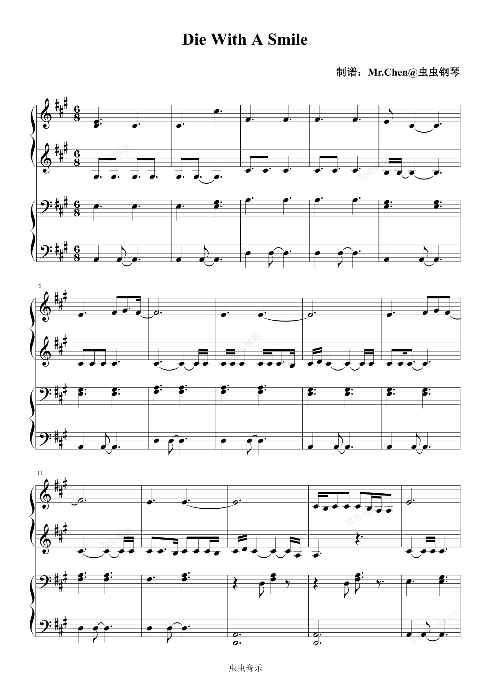钢琴谱:Die With A Smile (四手联弹)- Lady Gaga/Bruno Mars