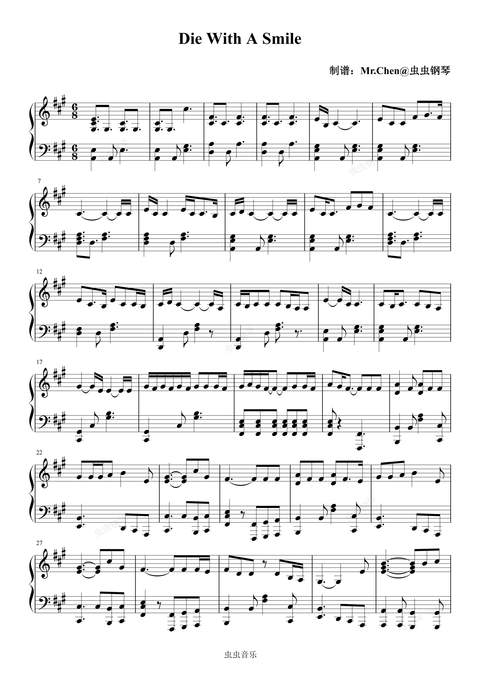 钢琴谱:Die With A Smile - Lady Gaga/Bruno Mars 极度还原