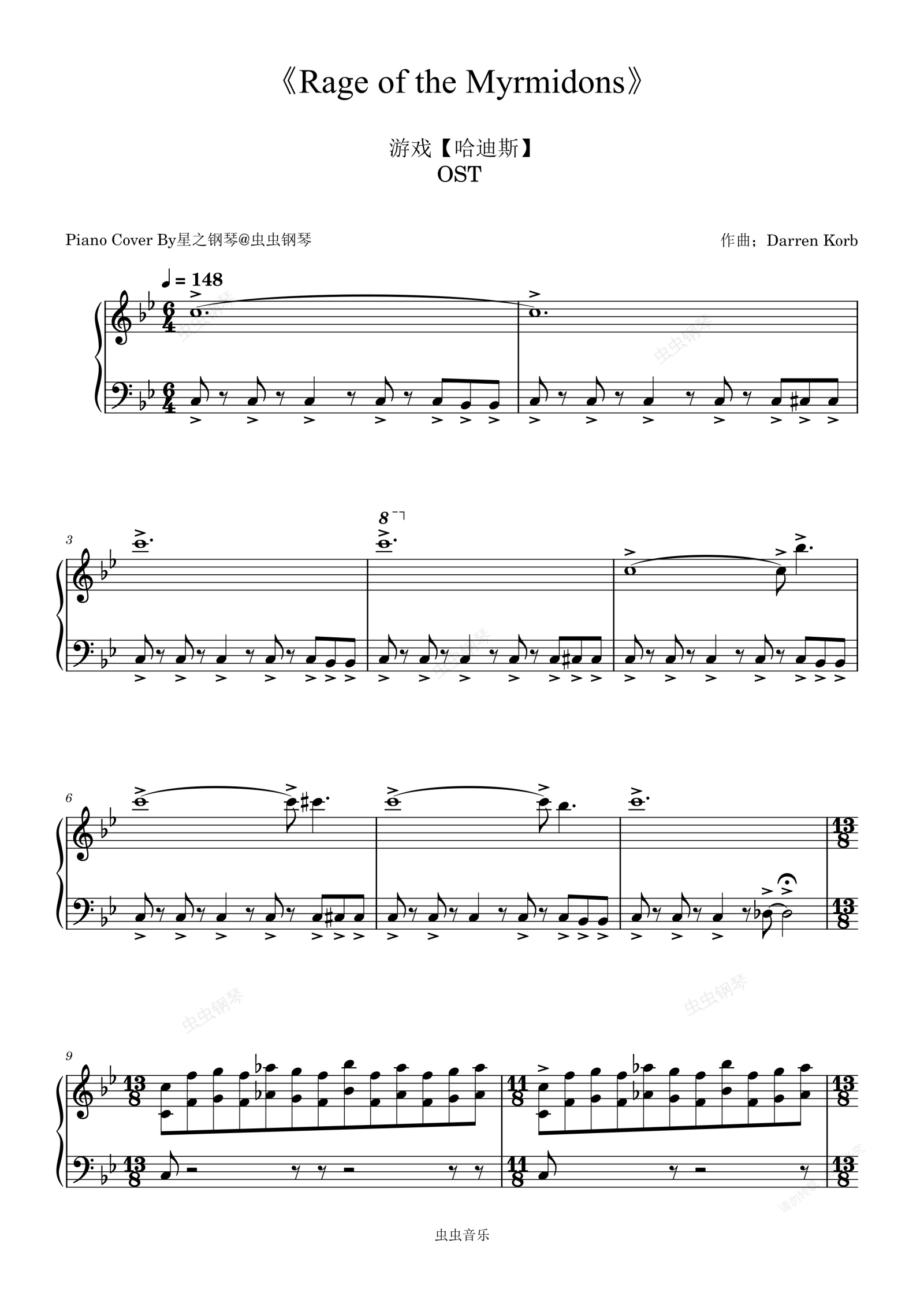 钢琴谱:【哈迪斯】《Rage of the Myrmidons》还原钢琴谱~星之钢琴~