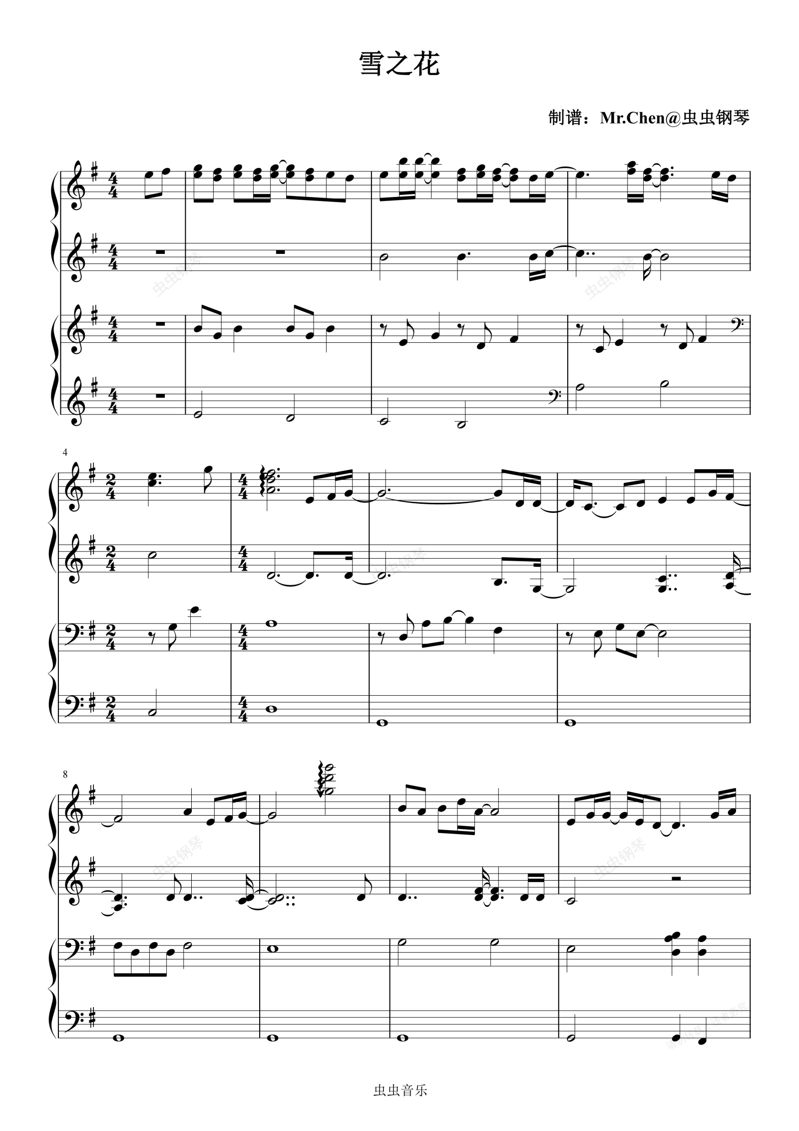钢琴谱:雪之花 (四手联弹)- 韩剧《对不起,我爱你》插曲