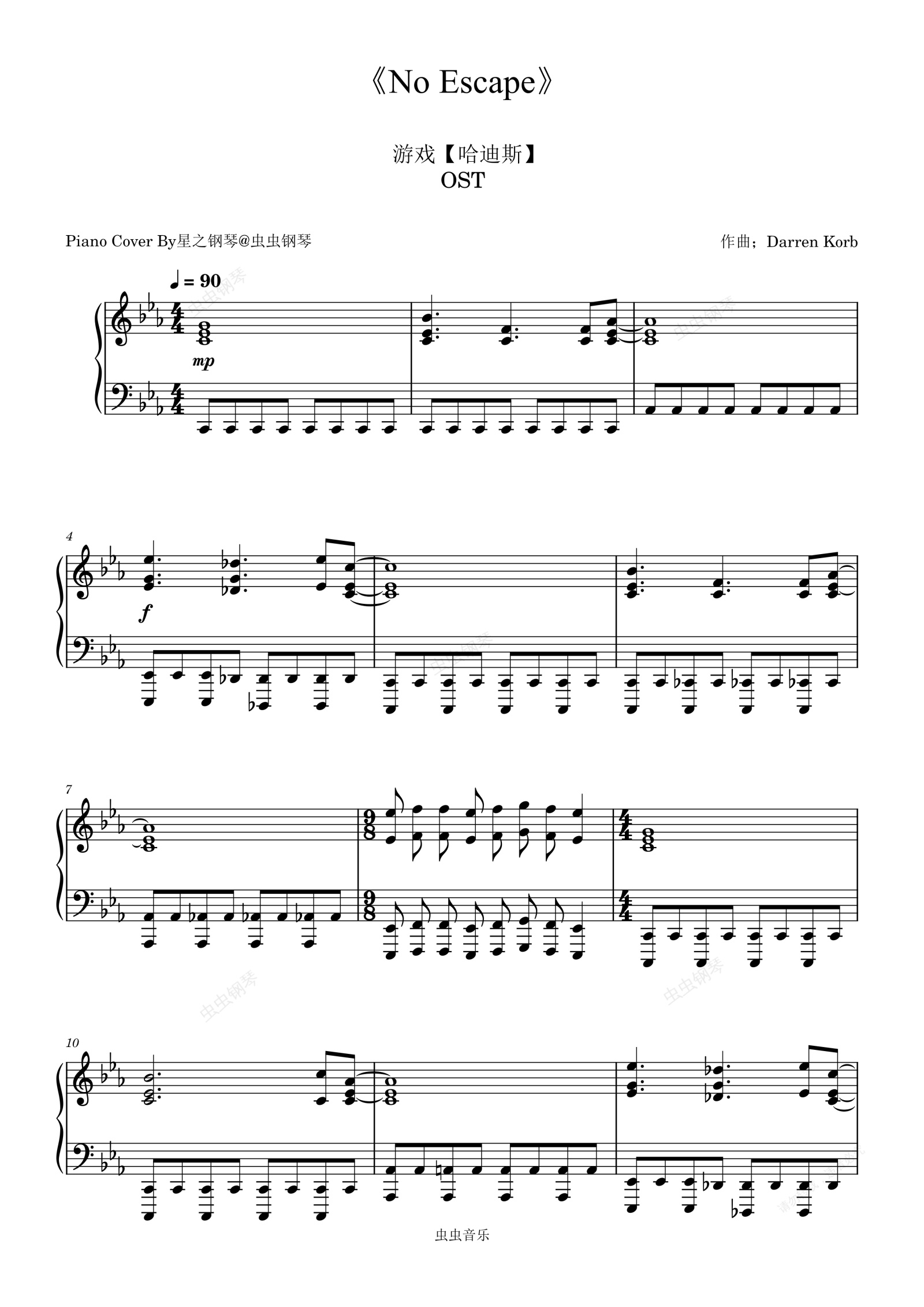 钢琴谱:【哈迪斯】《No Escape》还原钢琴谱~星之钢琴~