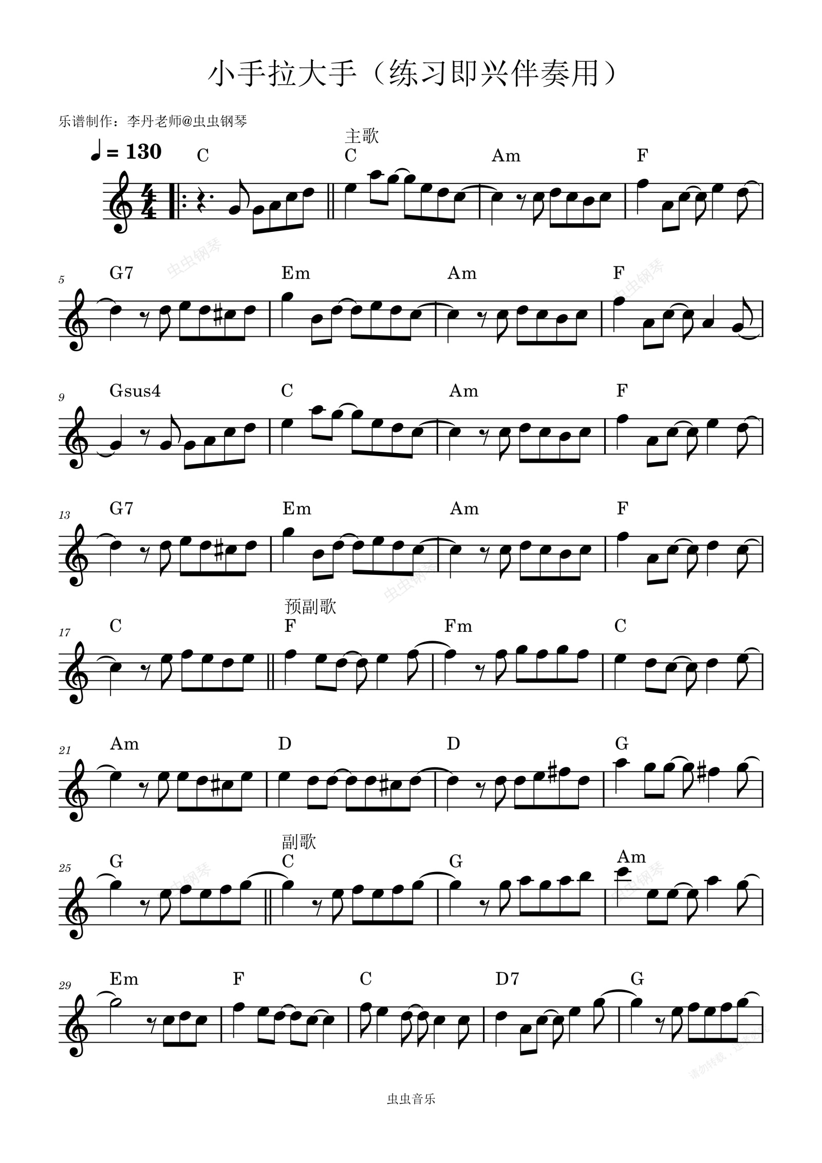 钢琴谱:小手拉大手(练习即兴伴奏用)
