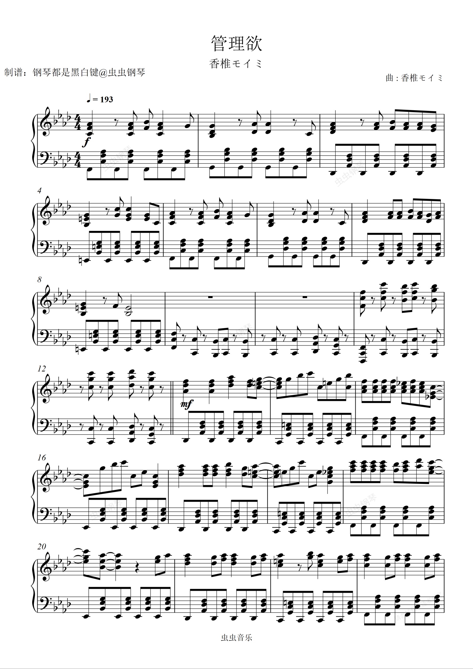 钢琴谱:【無來】管理欲【香椎モイミ】