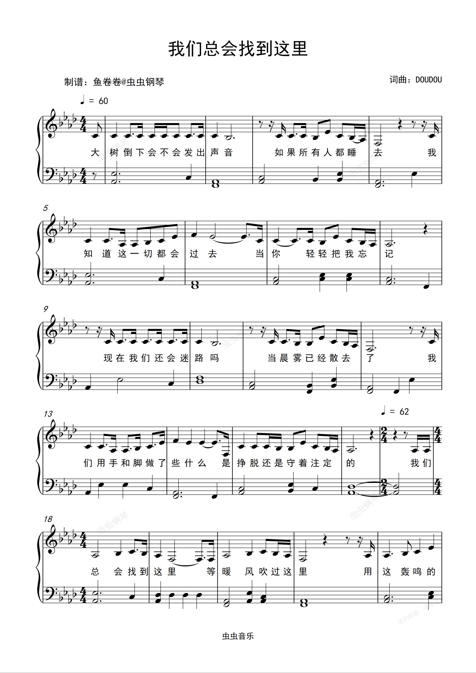 钢琴谱:我们总会找到这里-DOUDOU bA调钢琴谱 电影《长夜将尽》推广曲