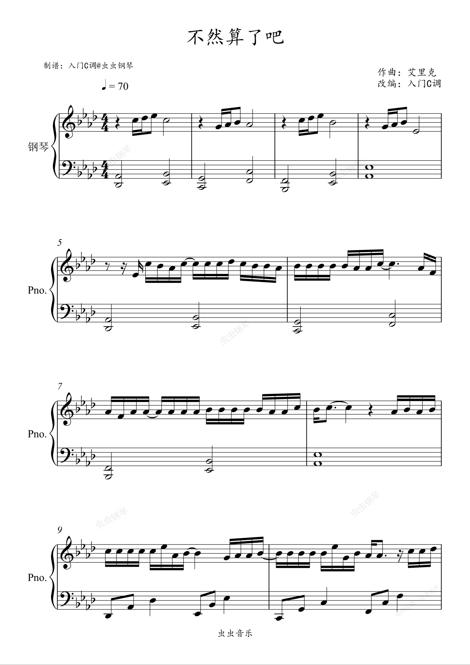 钢琴谱:不然算了吧 (Live) - 刘宇宁【原调简单完整版】