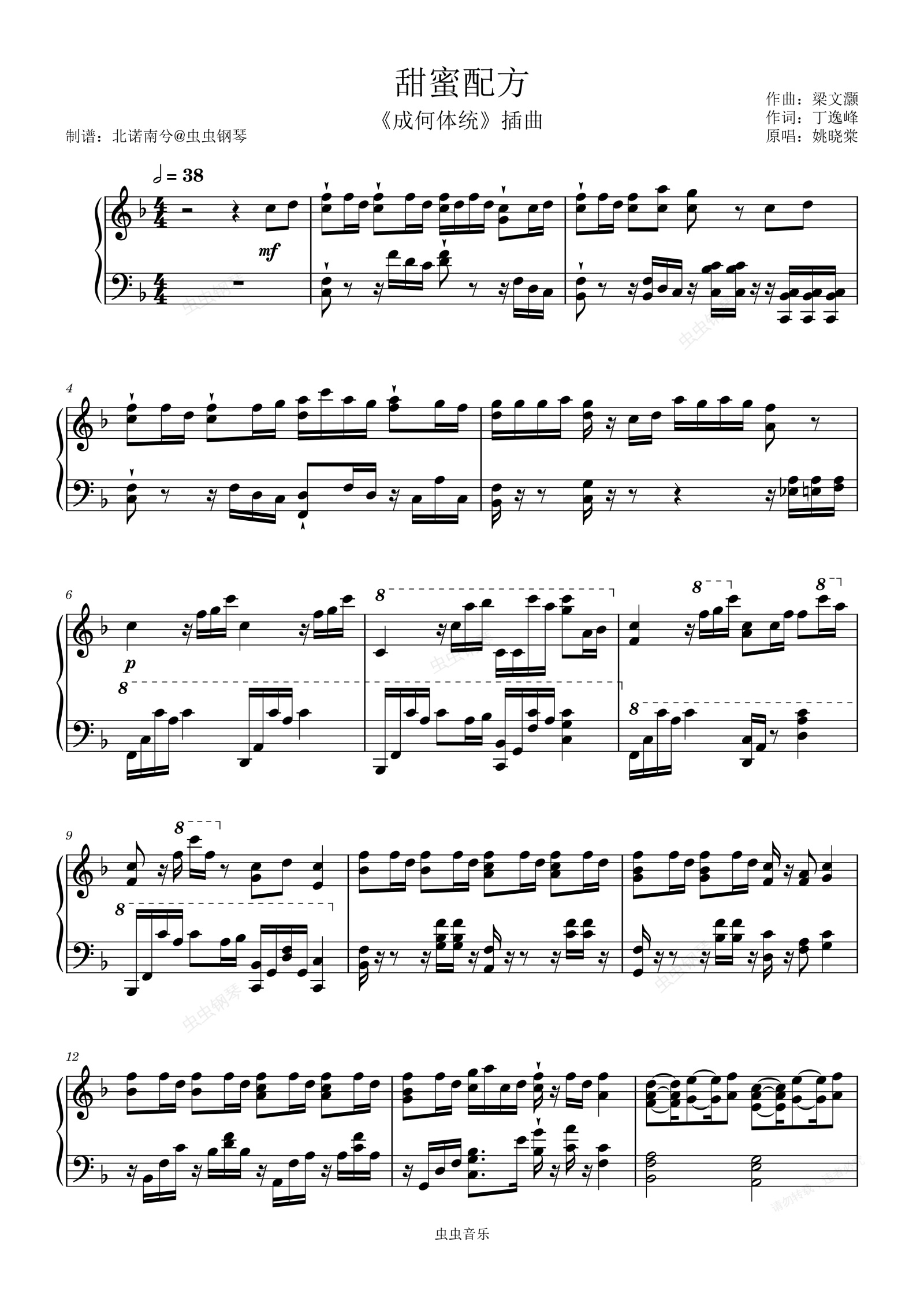 钢琴谱:甜蜜配方(高度还原版)——网剧成何体统OST