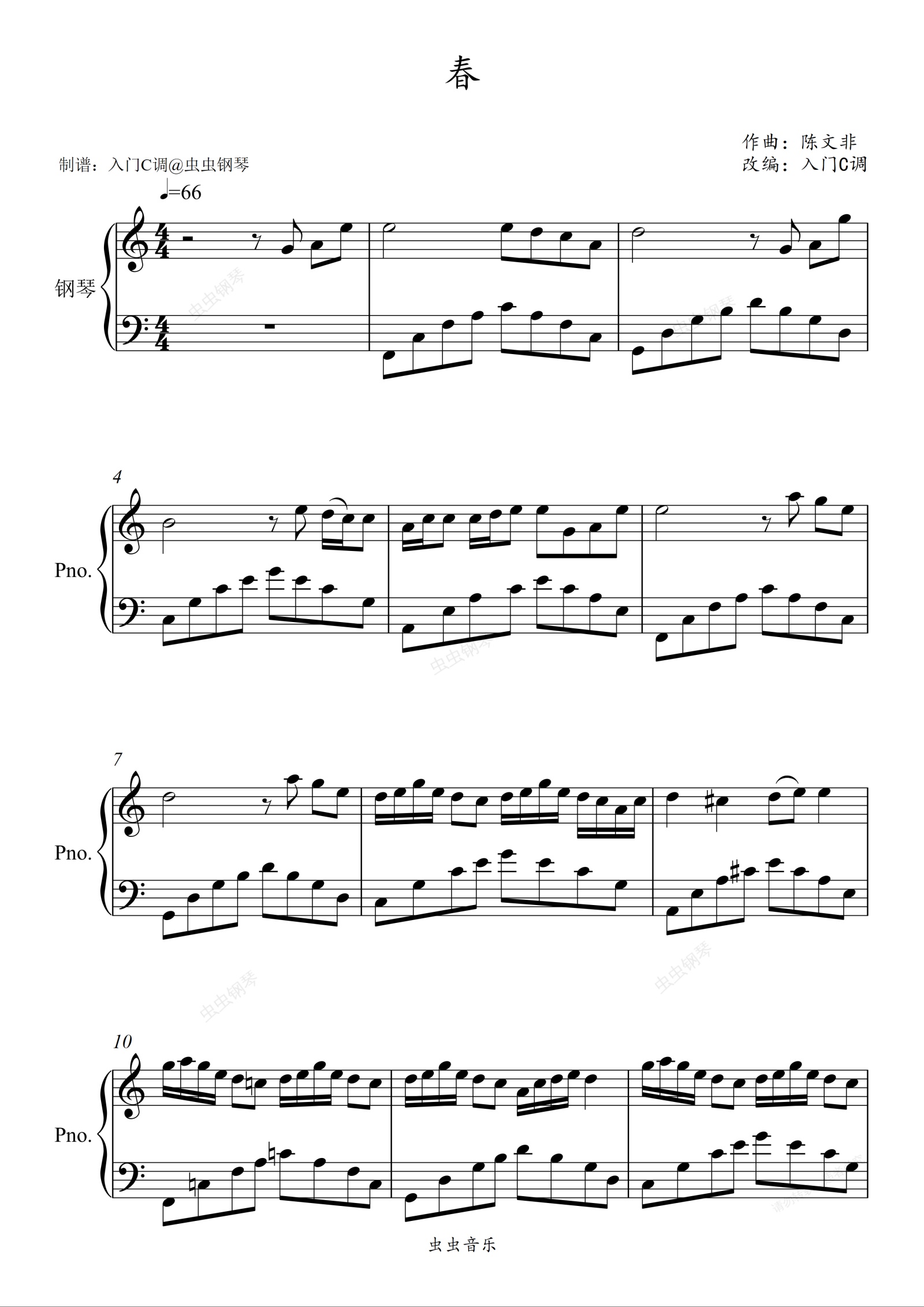 钢琴谱:春 - 陈文非【入门C调简单版】