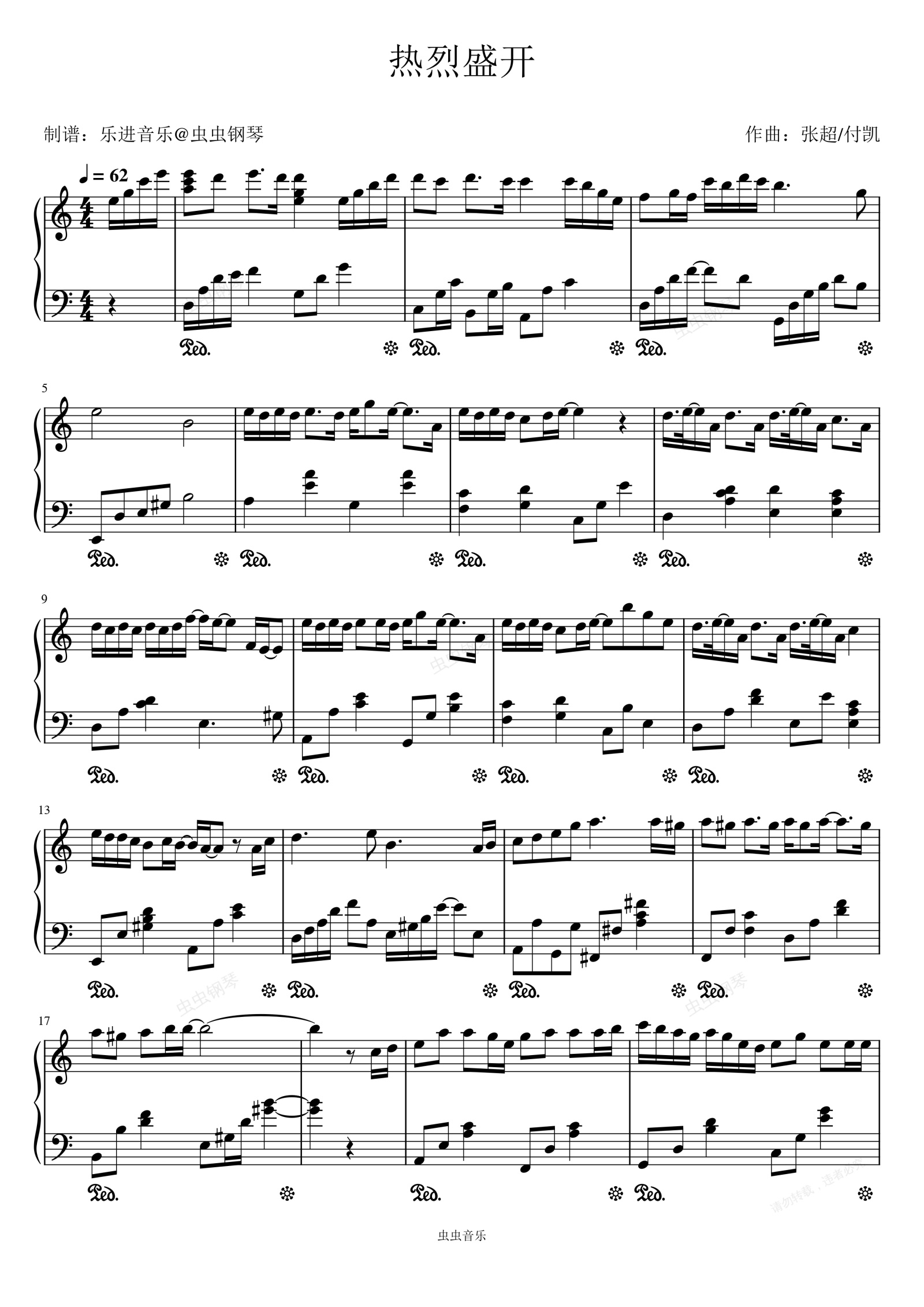 钢琴谱:《热烈盛开》C调无转调