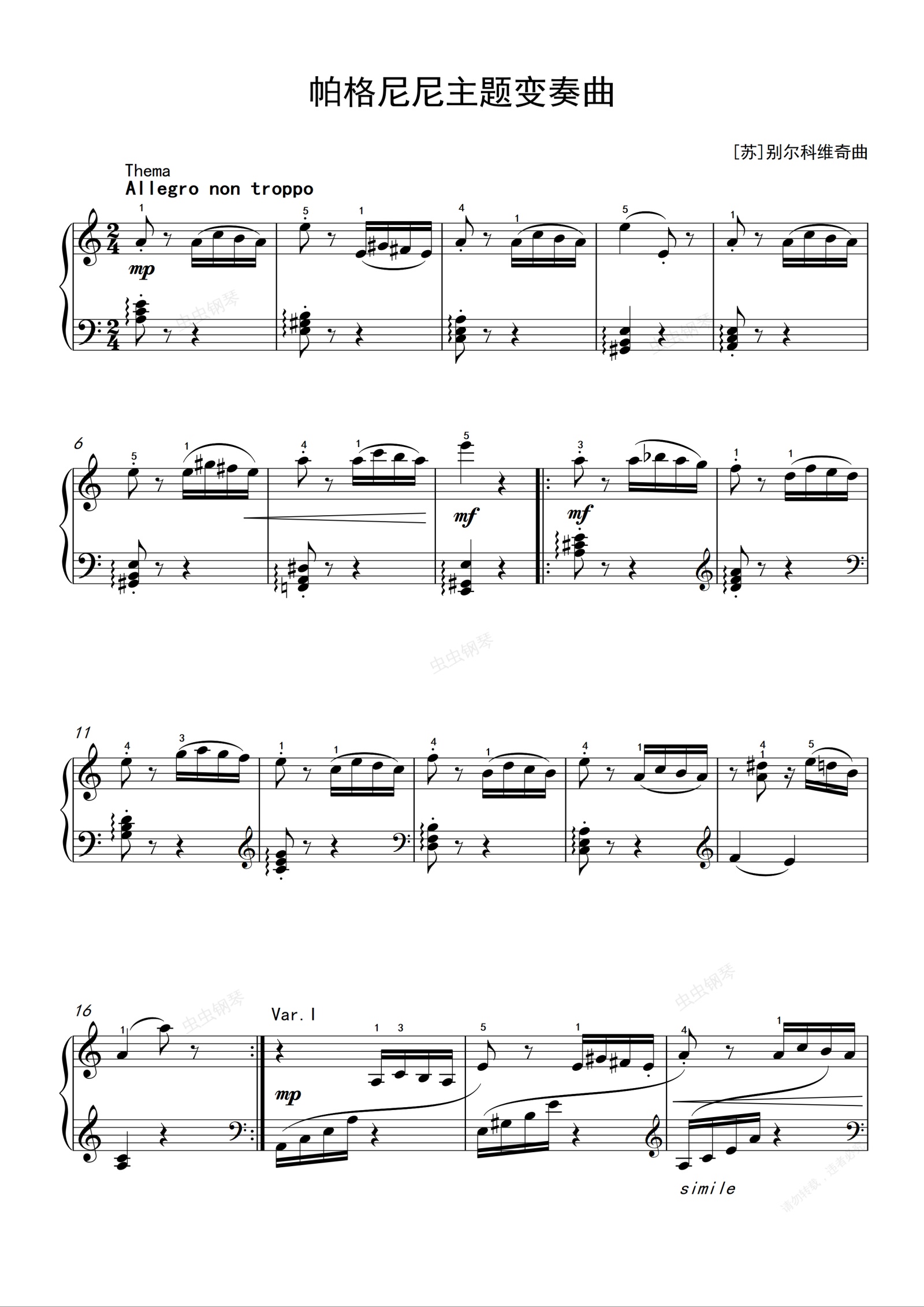 钢琴谱:帕格尼尼主题变奏曲(选段)