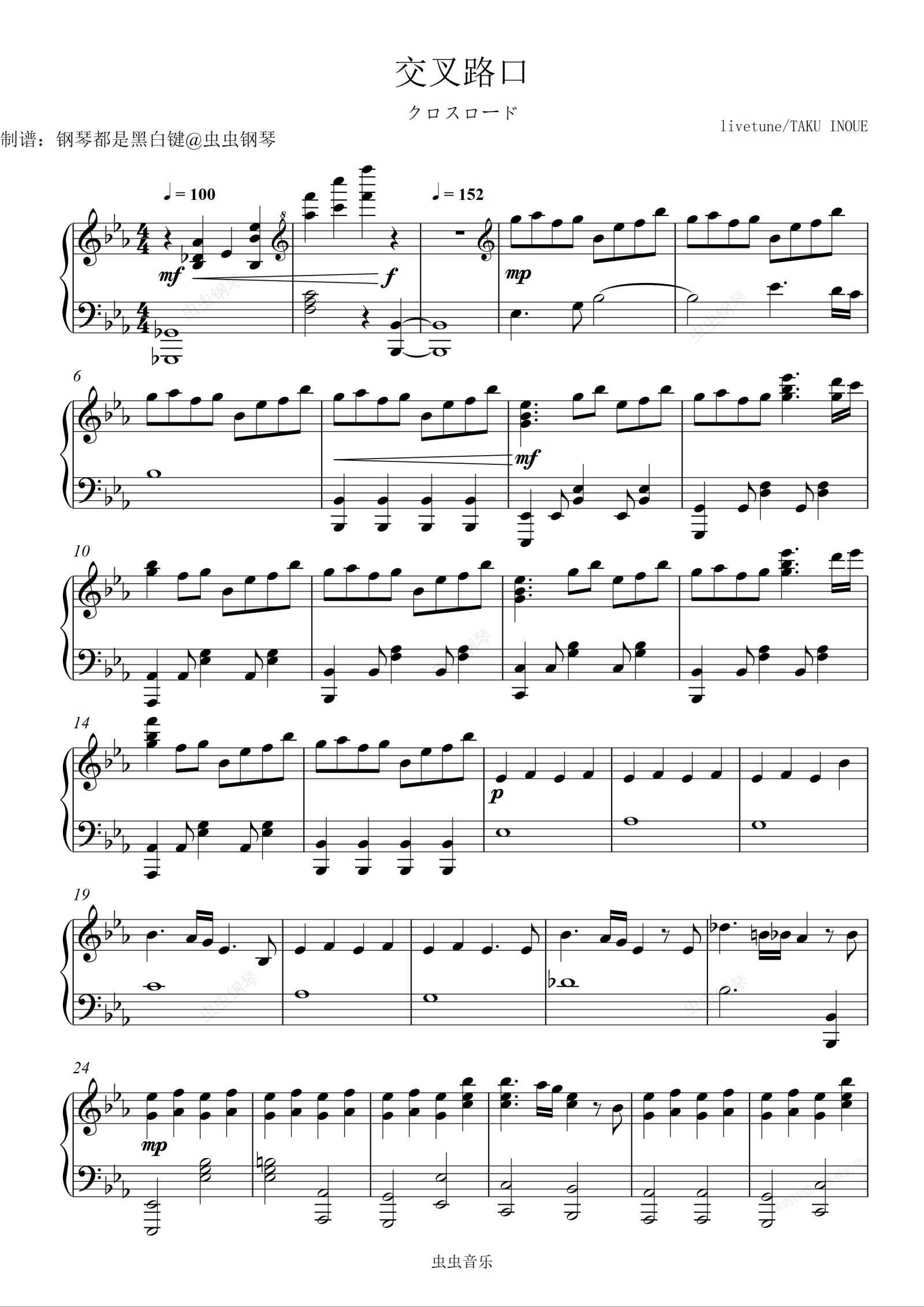 钢琴谱:【初音ミク】交叉路口/クロスロード