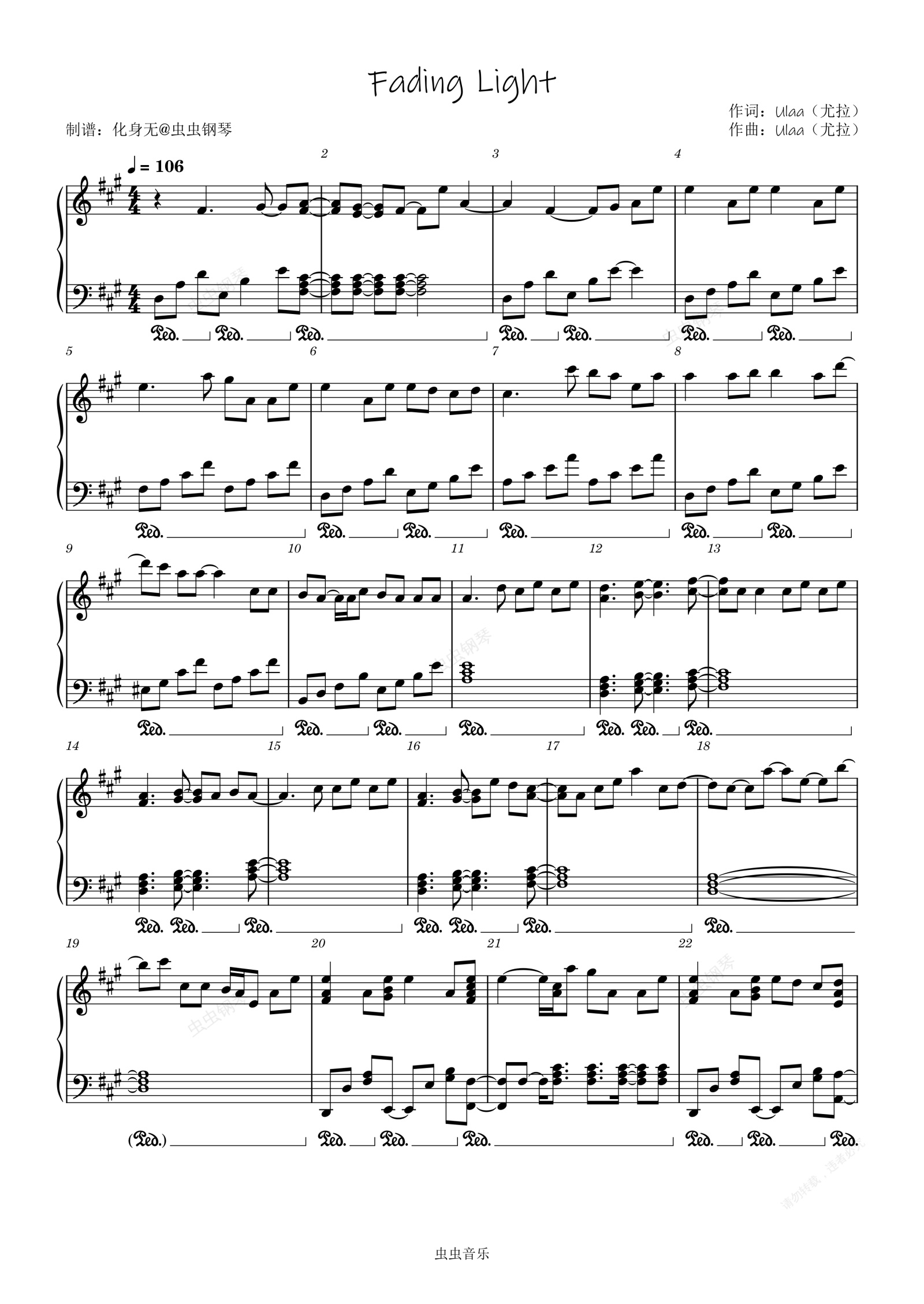 钢琴谱:Fading Light 原调独奏版 化身无编配
