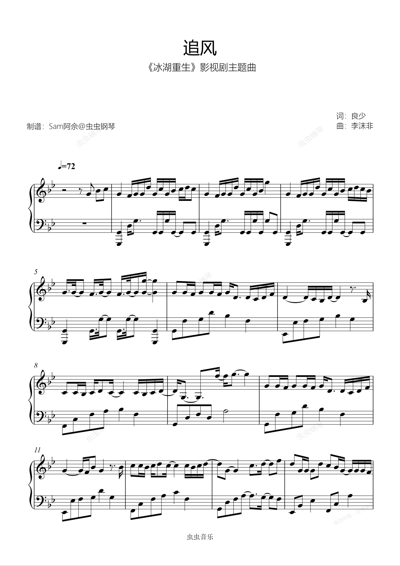 钢琴谱:原调《追风》刘宇宁