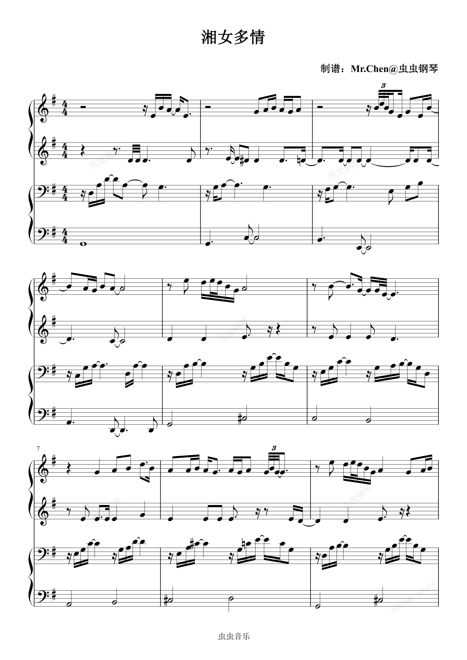 钢琴谱:湘女多情 (四手联弹)- 周杰伦