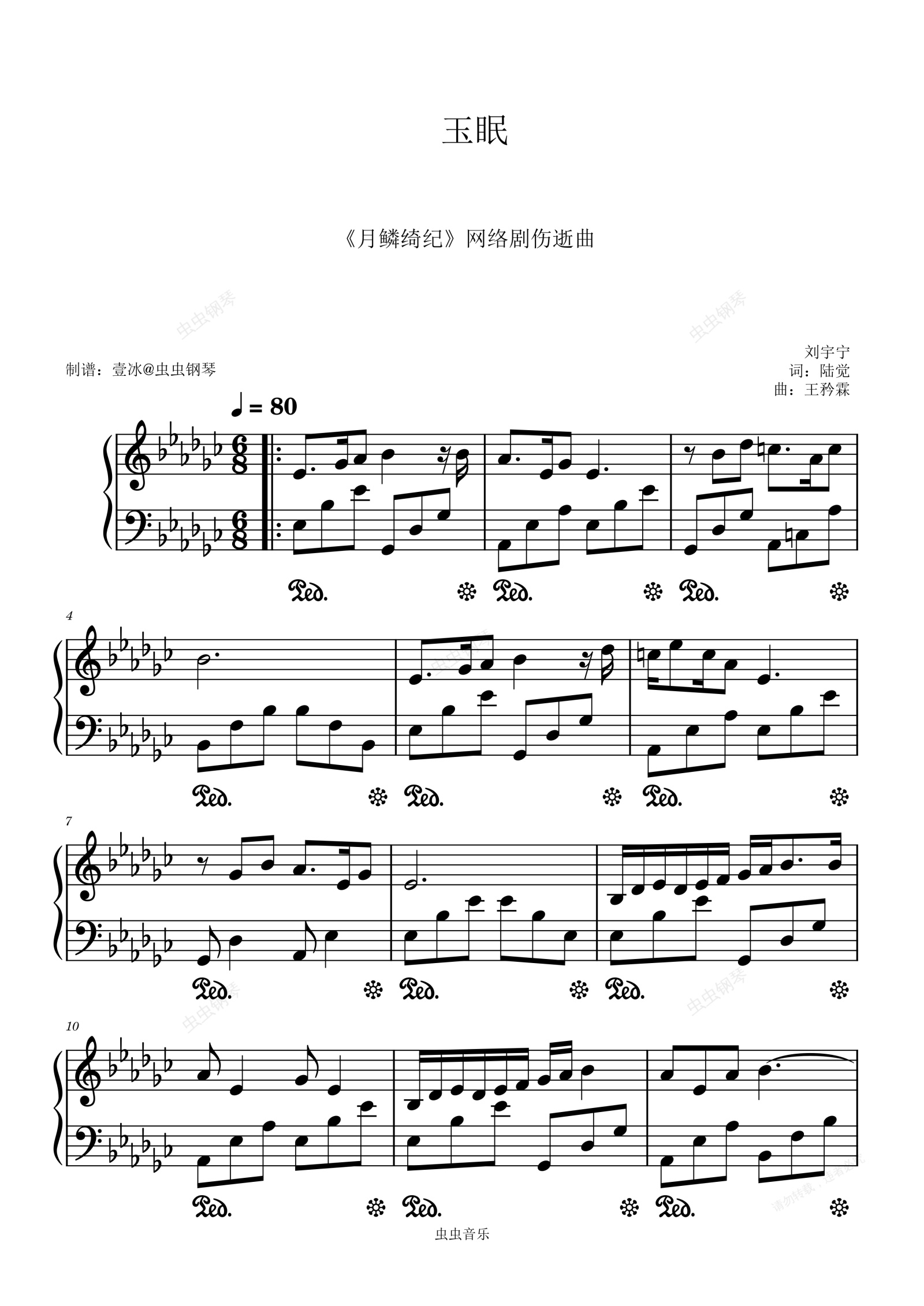 钢琴谱:玉眠 (《月鳞绮纪》网络剧伤逝曲) - 刘宇宁 原调