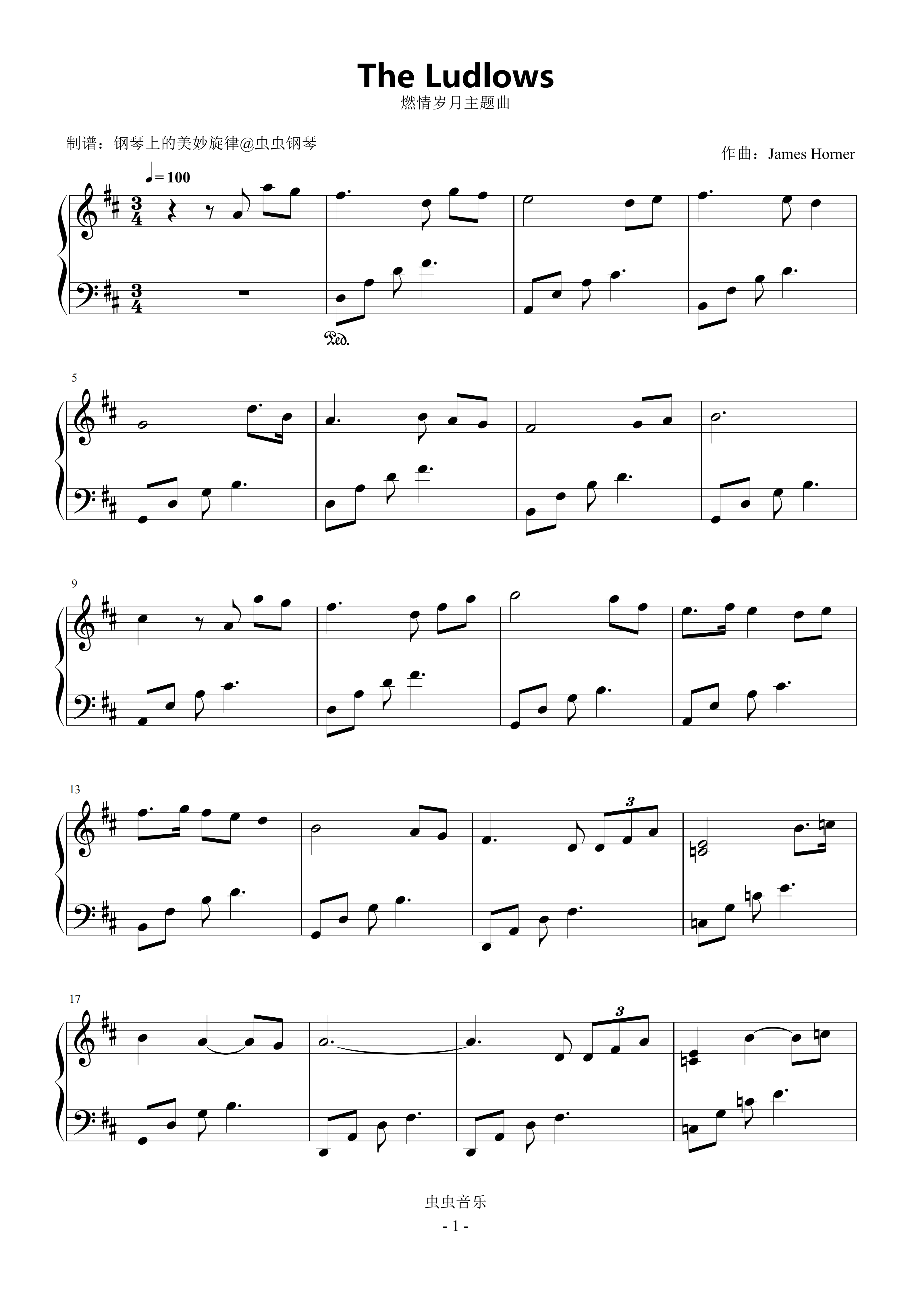 钢琴谱:The Ludlows 原调简易版 《燃情岁月》主题曲