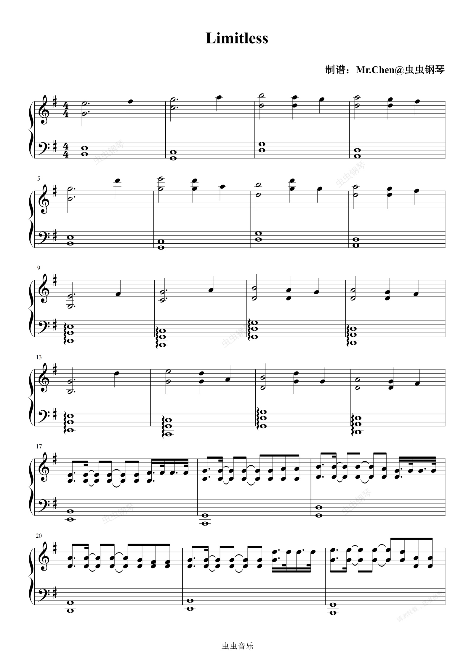 钢琴谱:Limitless G调 - SeVen.13 抖音神曲