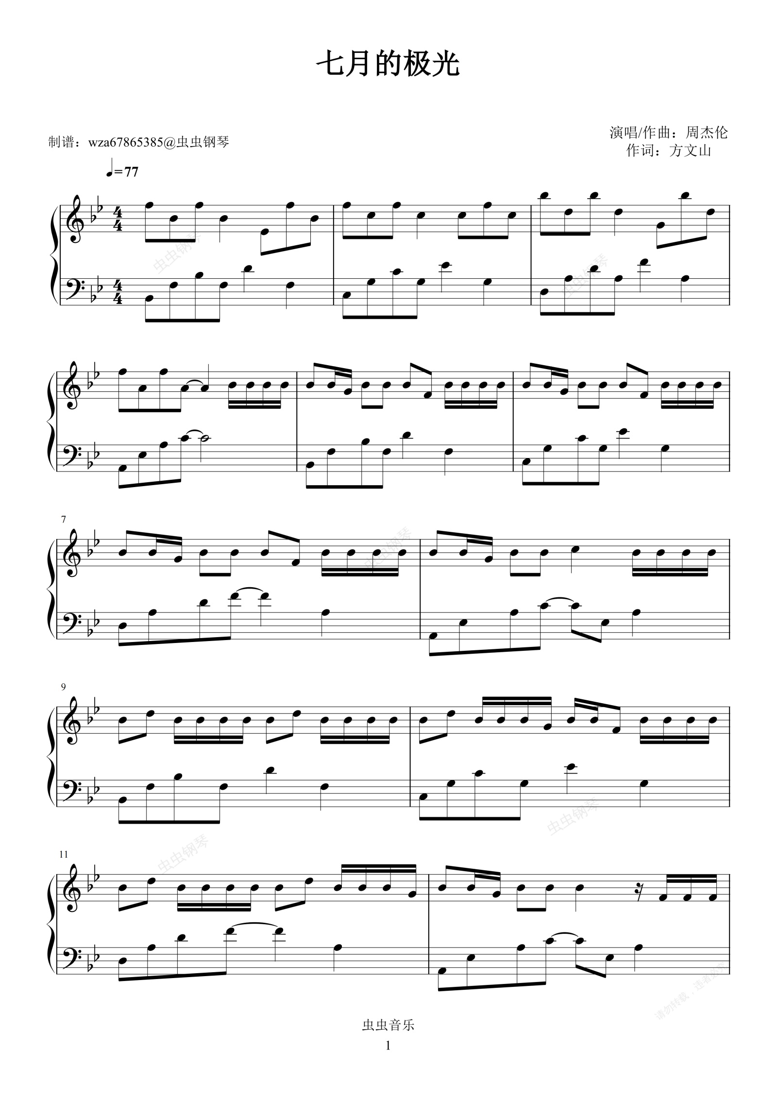 钢琴谱:七月的极光