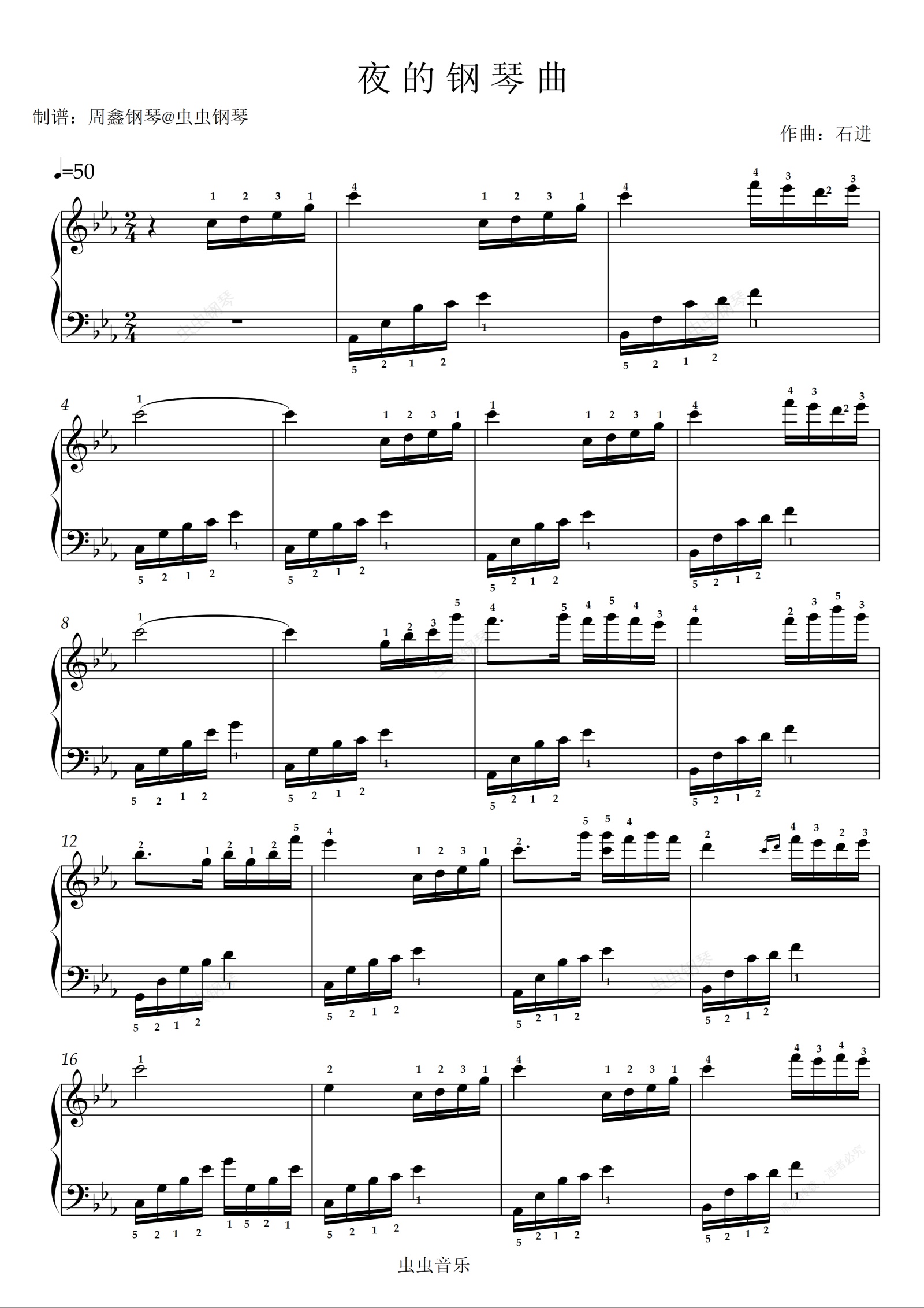 钢琴谱:《夜的钢琴曲》带指法