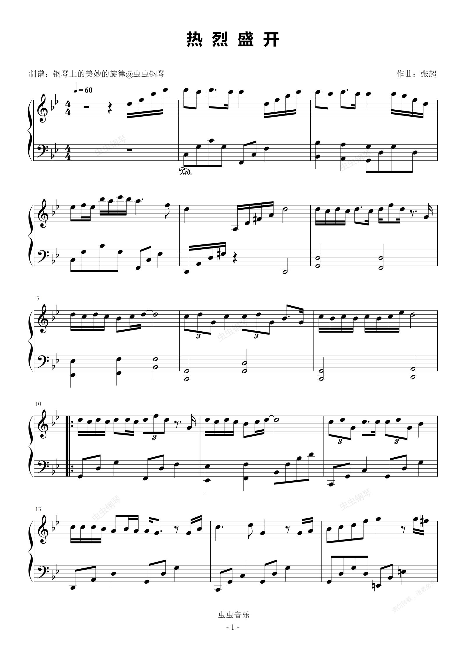 钢琴谱:热烈盛开 原调简易版 周深