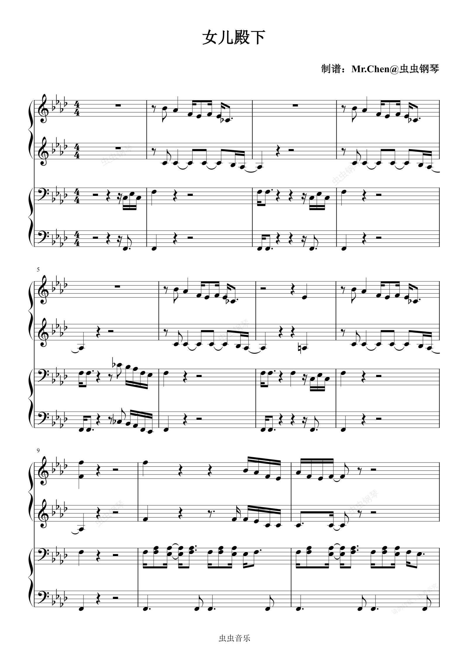 钢琴谱:女儿殿下 (四手联弹)- 周杰伦