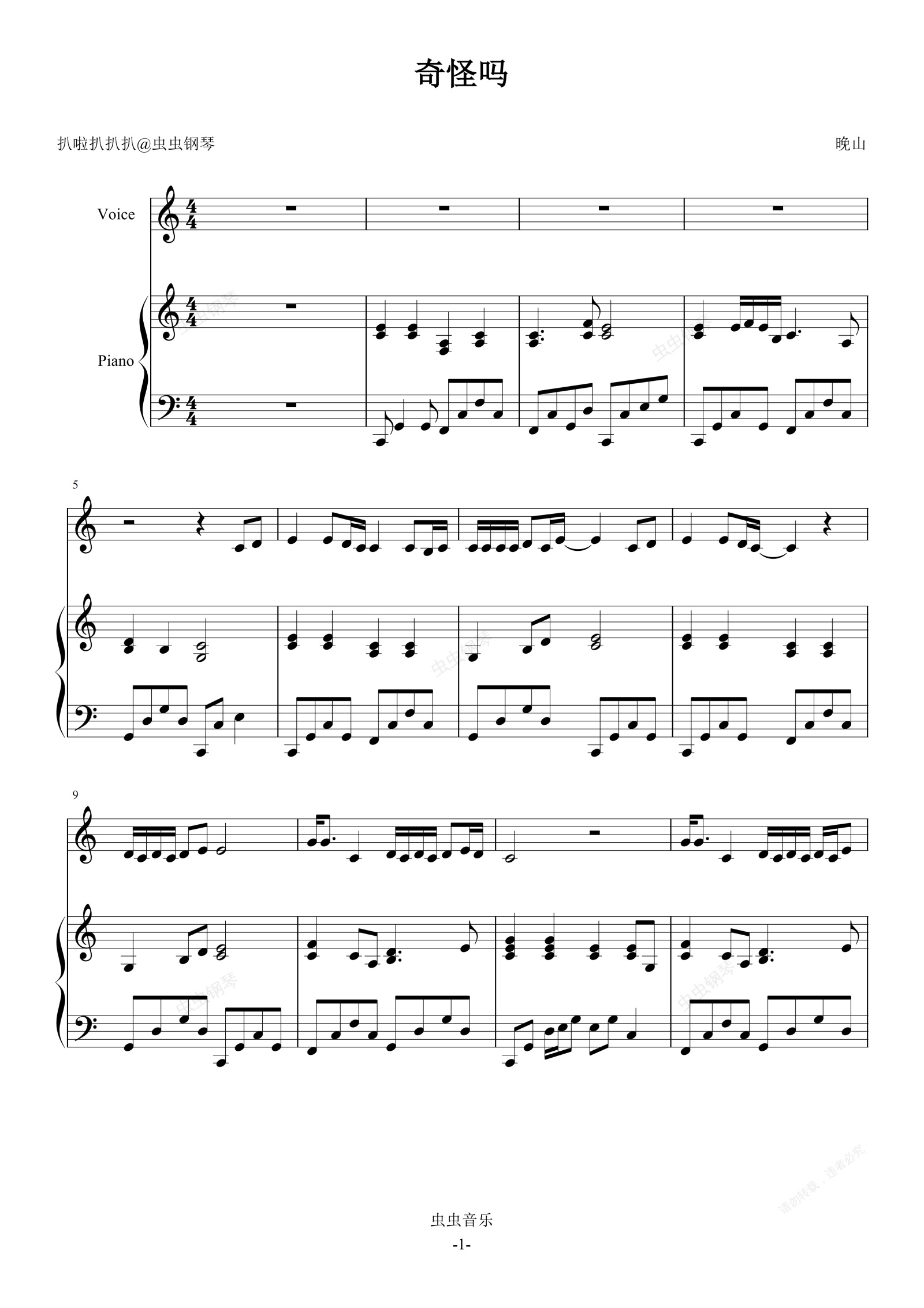 钢琴谱:《奇怪吗》-晚山-钢琴伴奏谱