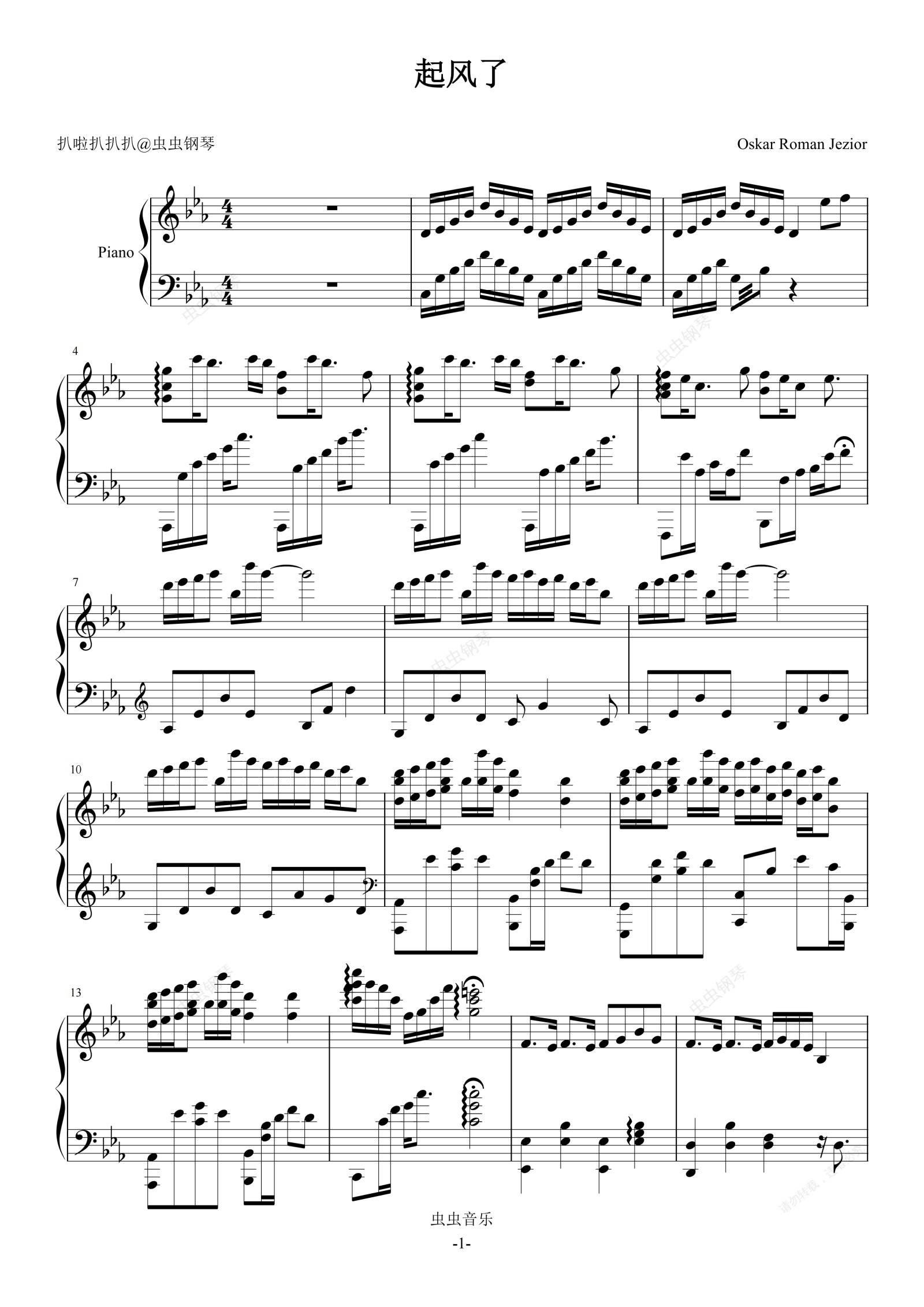 钢琴谱:《起风了》-Oskar Roman Jezior-罗曼耶卓版