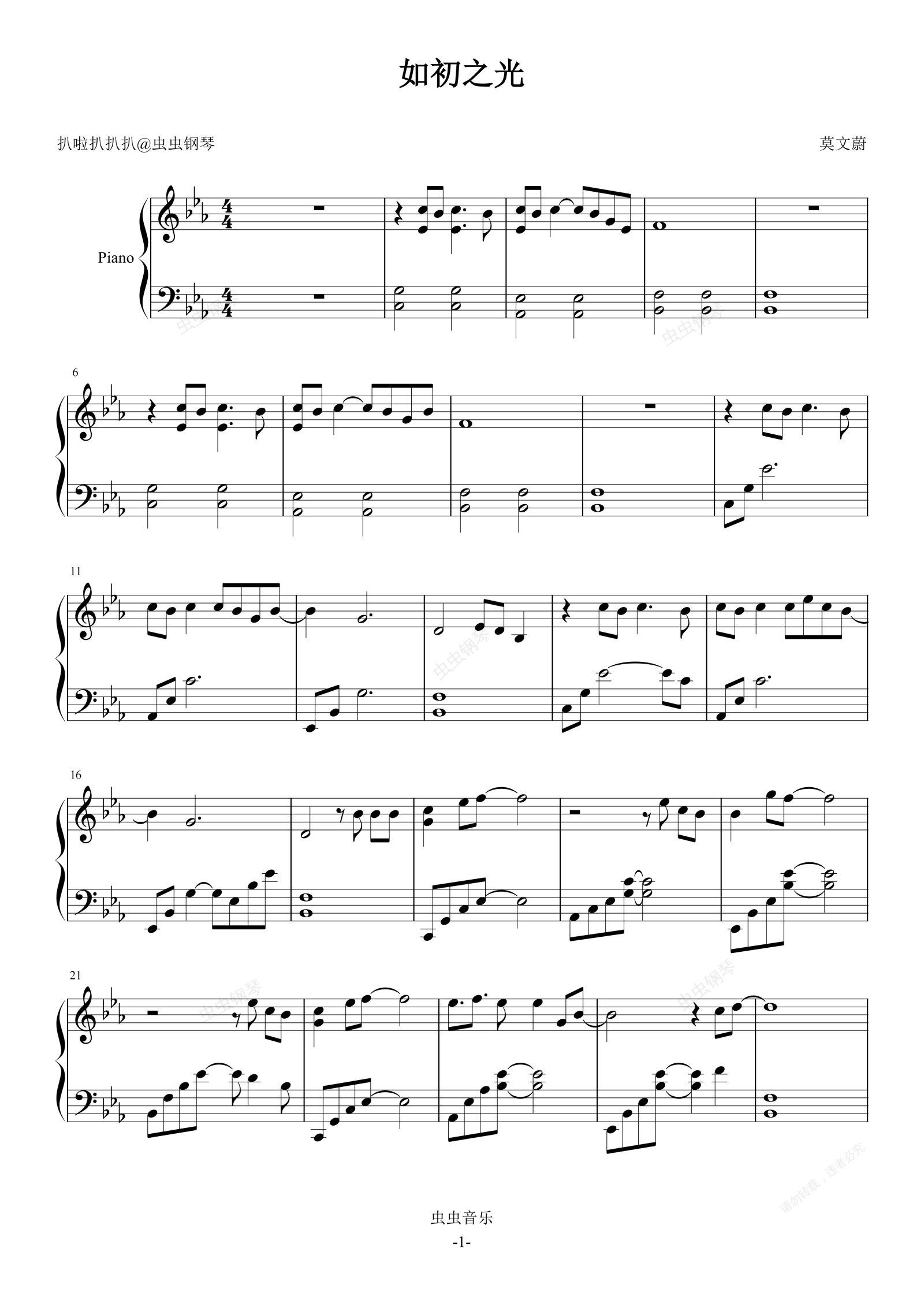 钢琴谱:《如初之光》-莫文蔚-钢琴演奏谱