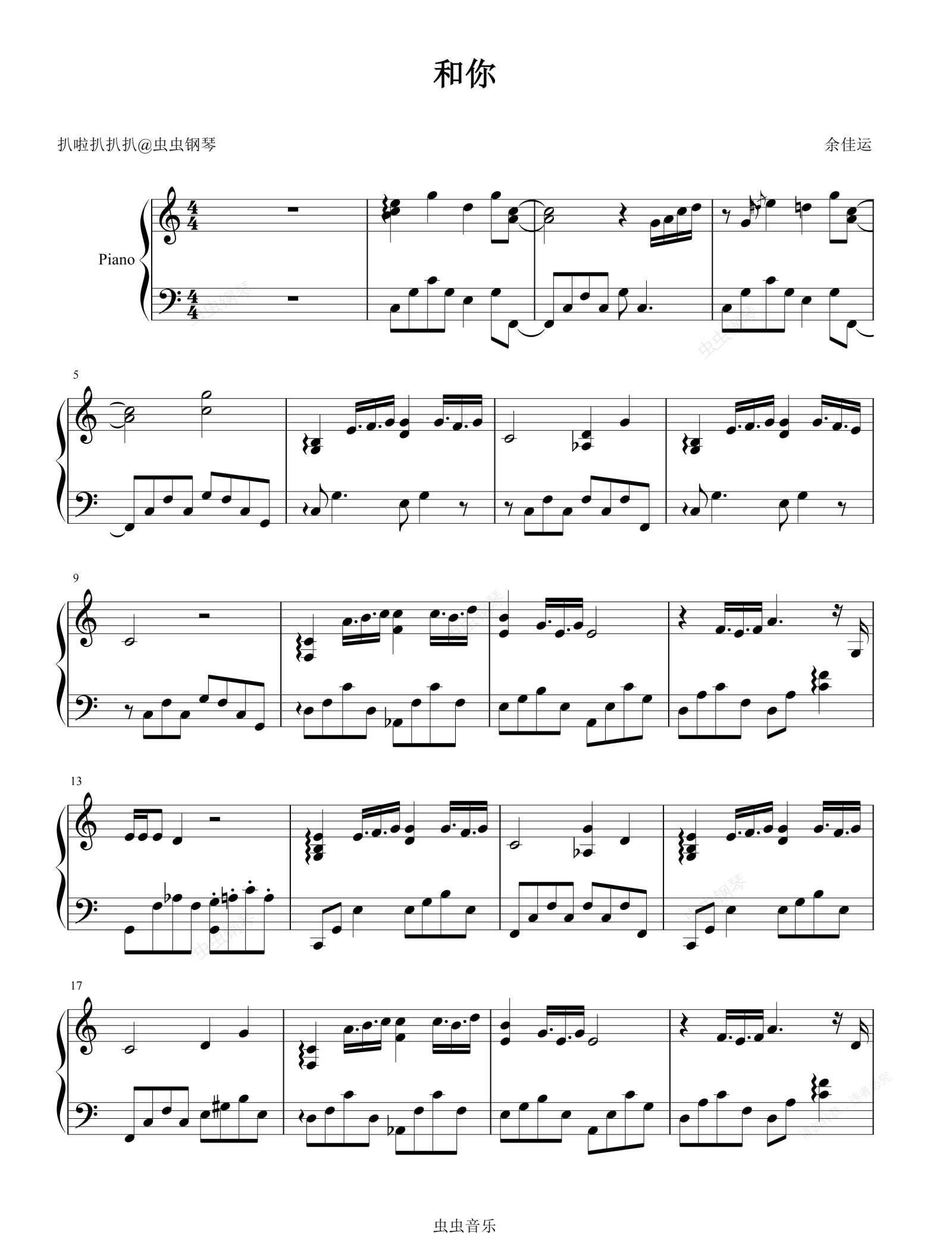 钢琴谱:《和你》-余佳运-钢琴演奏谱