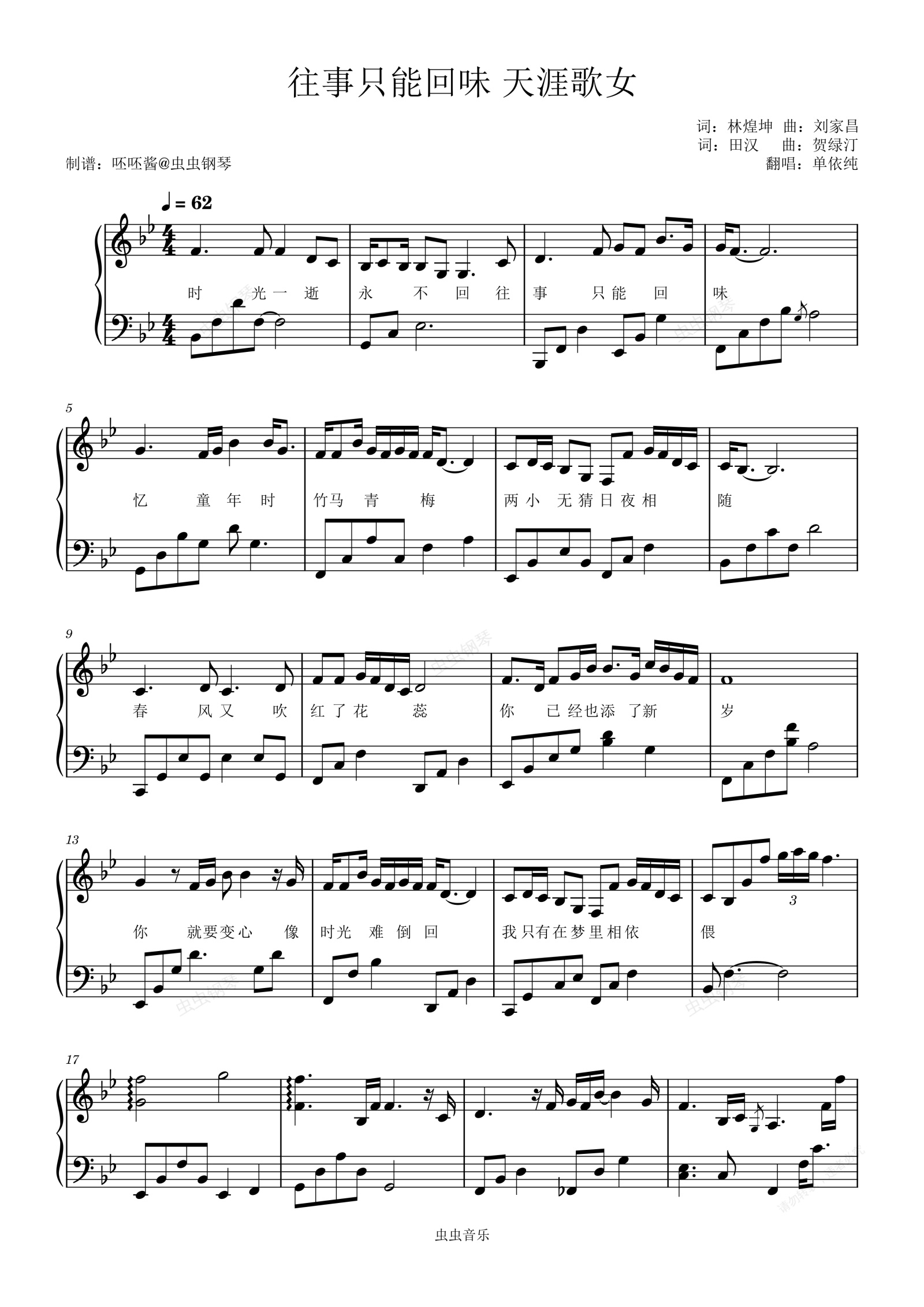钢琴谱:往事只能回味+天涯歌女-单依纯-Bb调