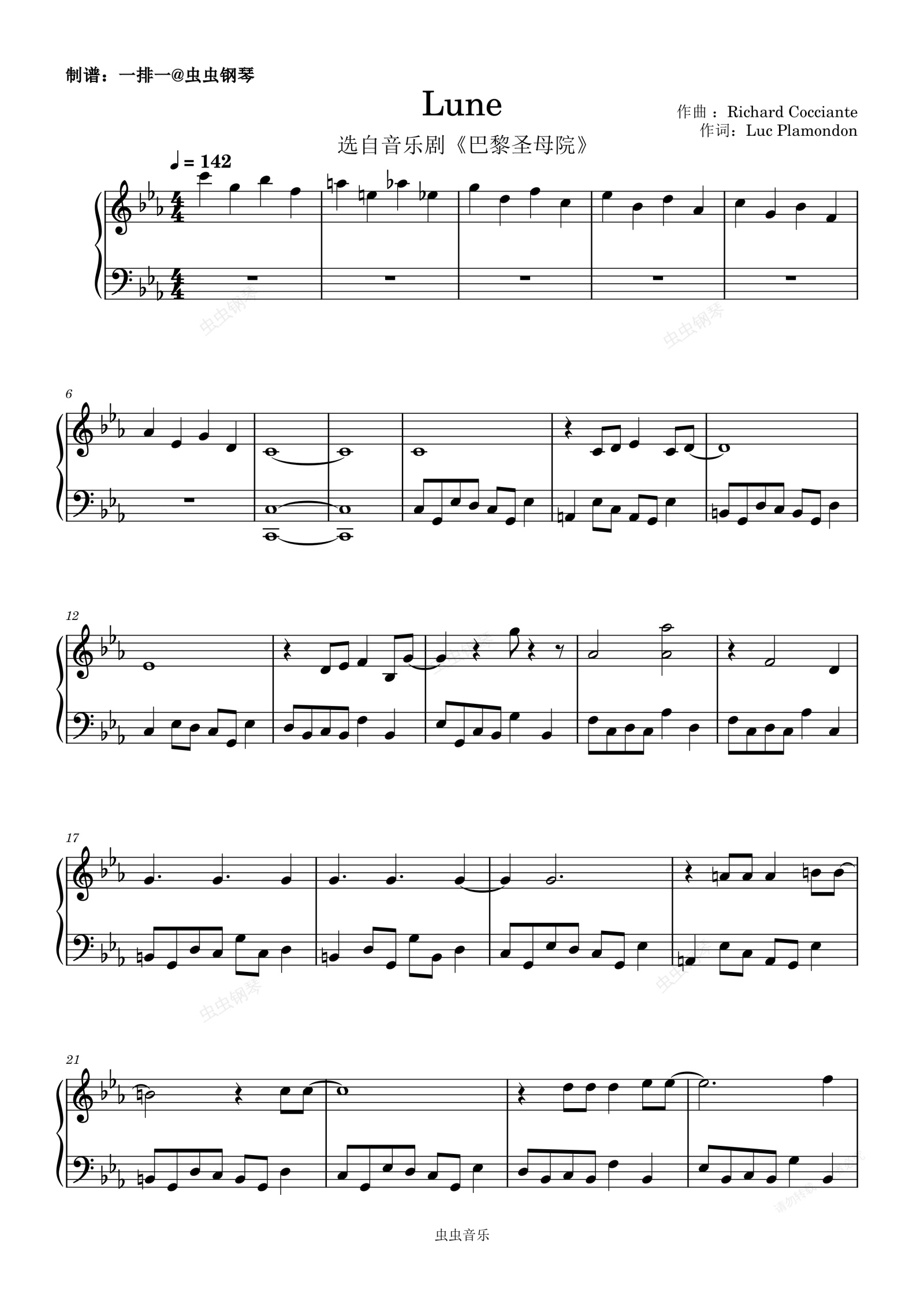 钢琴谱:《Lune》降E调【音乐剧《巴黎圣母院》(nddp)】