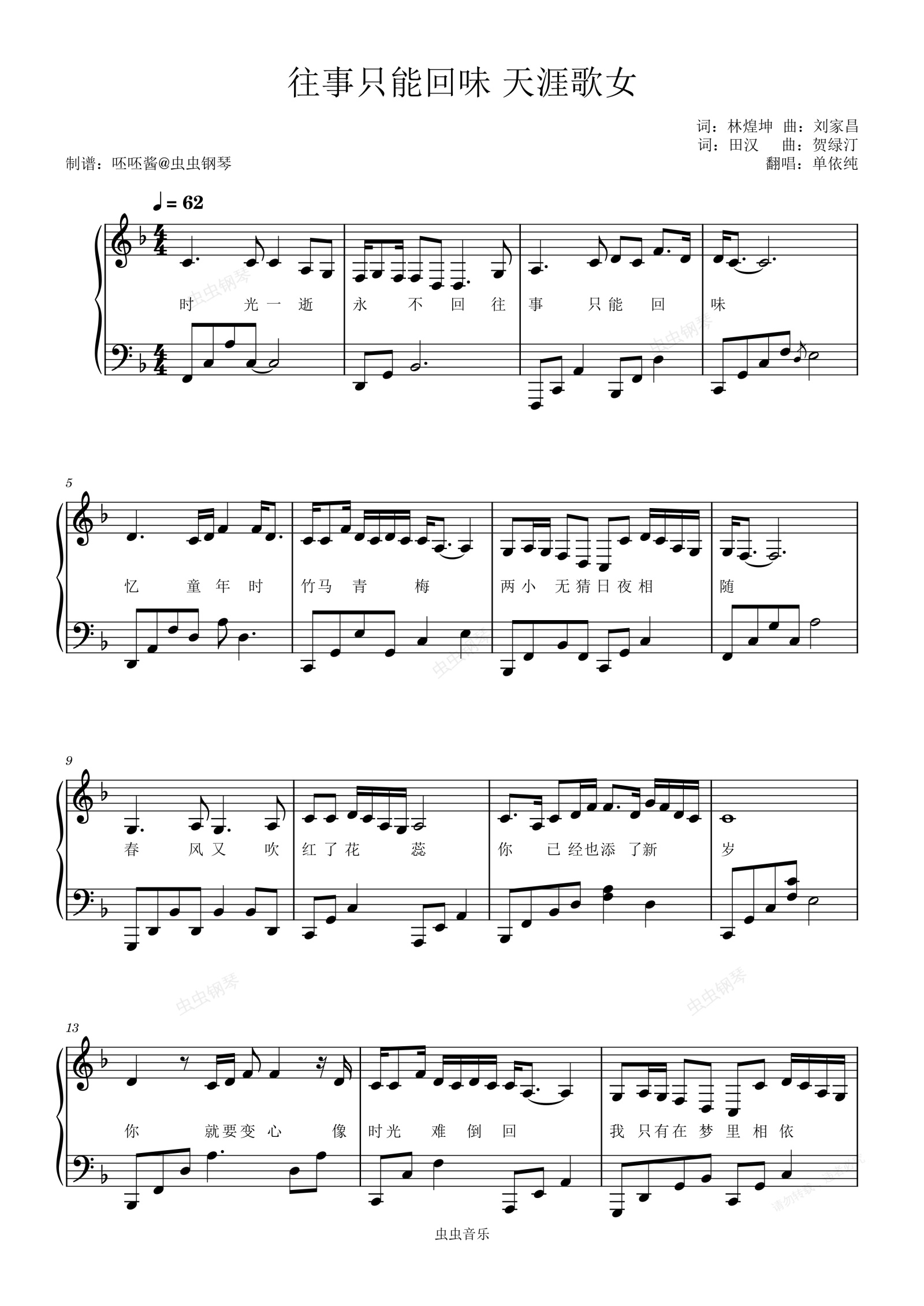 钢琴谱:往事只能回味+天涯歌女【男生版】-单依纯-F调