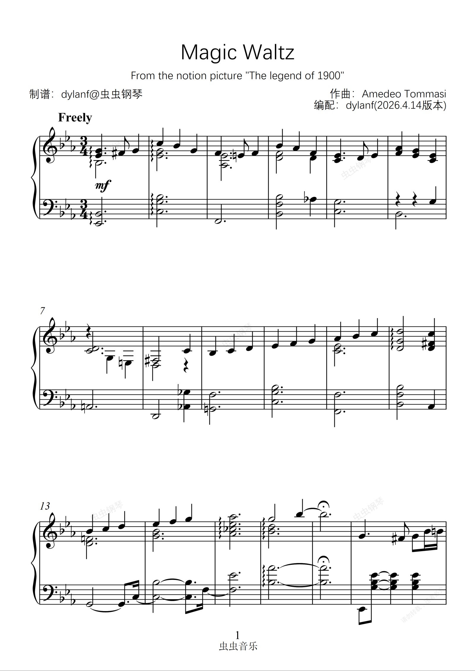 钢琴谱:Magic Waltz 精编版 海上钢琴师 1900 dylanf
