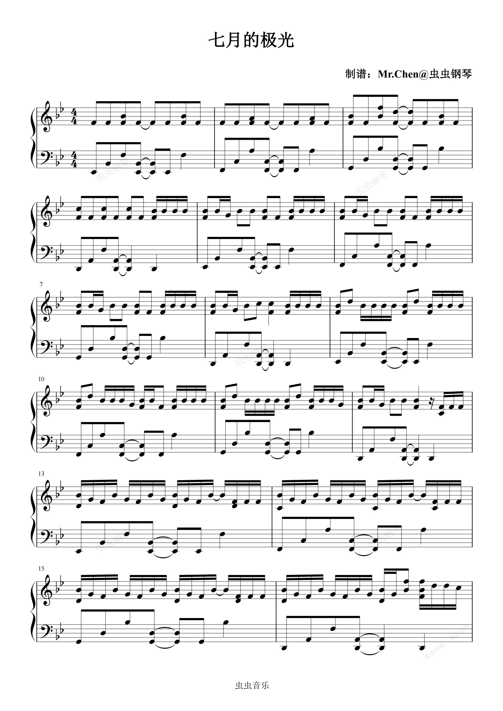 钢琴谱:七月的极光 - 周杰伦 极度还原