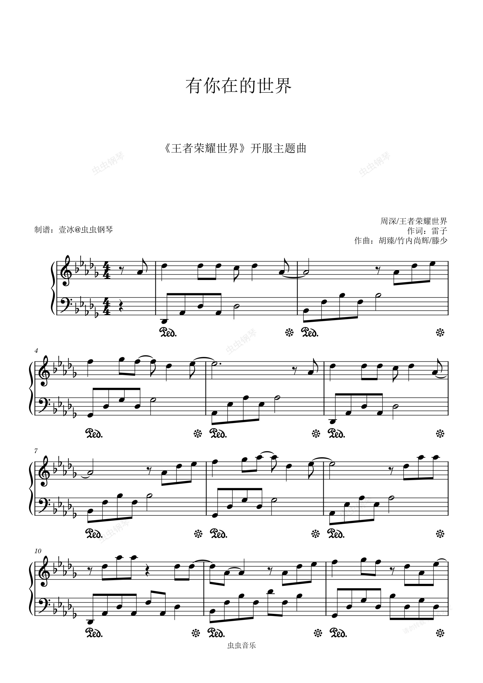 钢琴谱:有你在的世界 (《王者荣耀世界》开服主题曲) - 周深/王者荣耀世界 原调