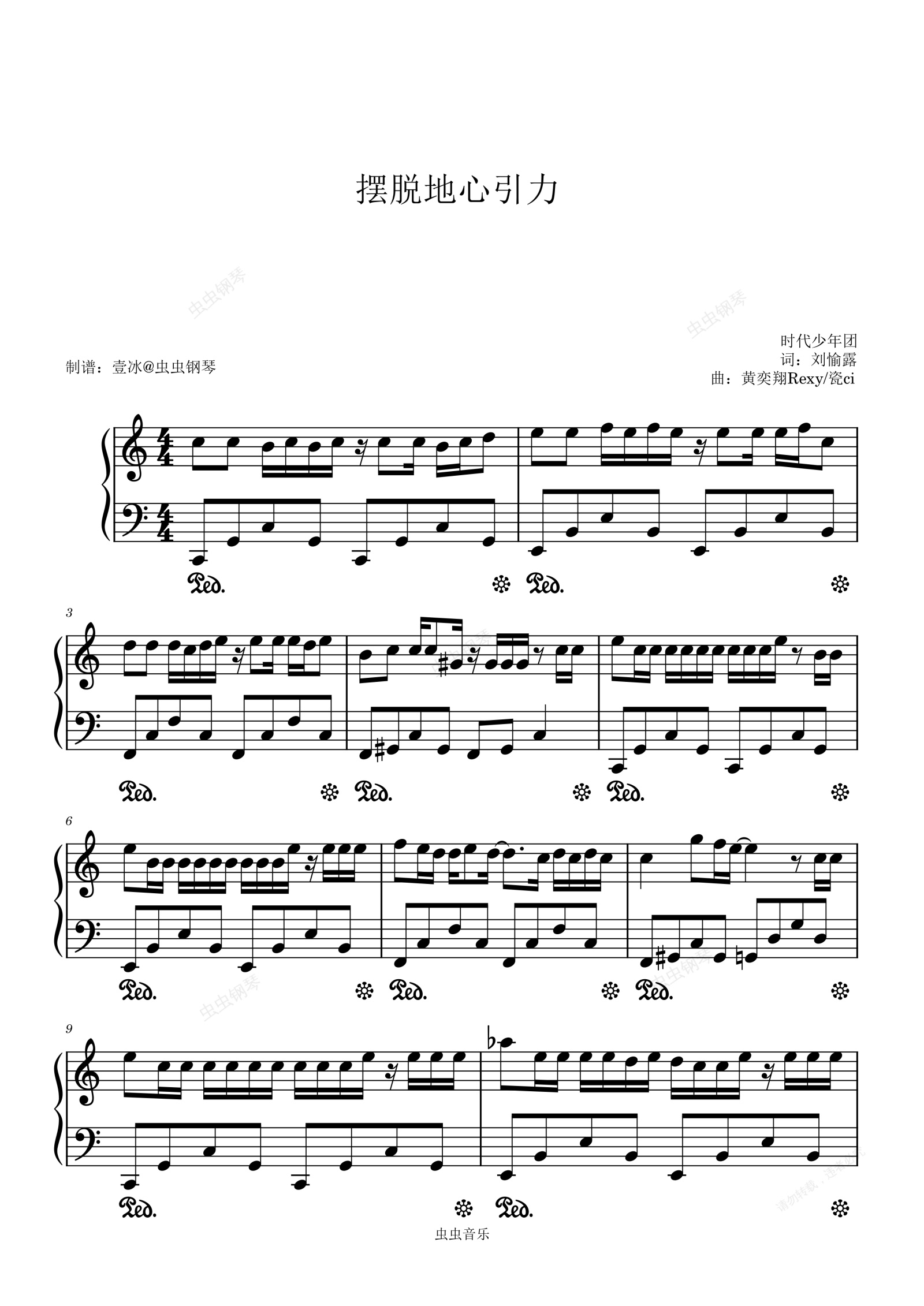 钢琴谱:摆脱地心引力 - 时代少年团 C调