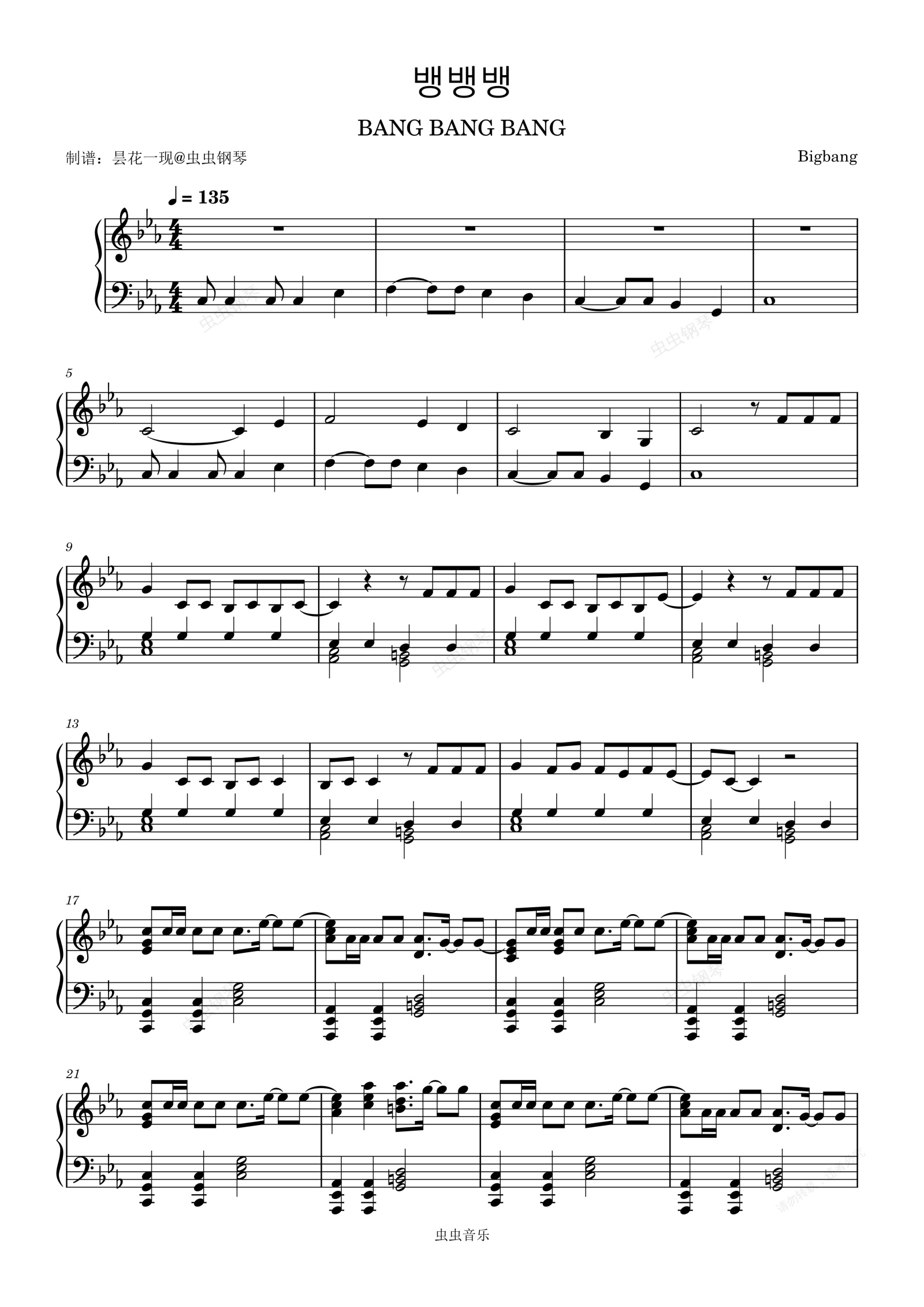 钢琴谱:뱅뱅뱅 (BANG BANG BANG) Bigbang