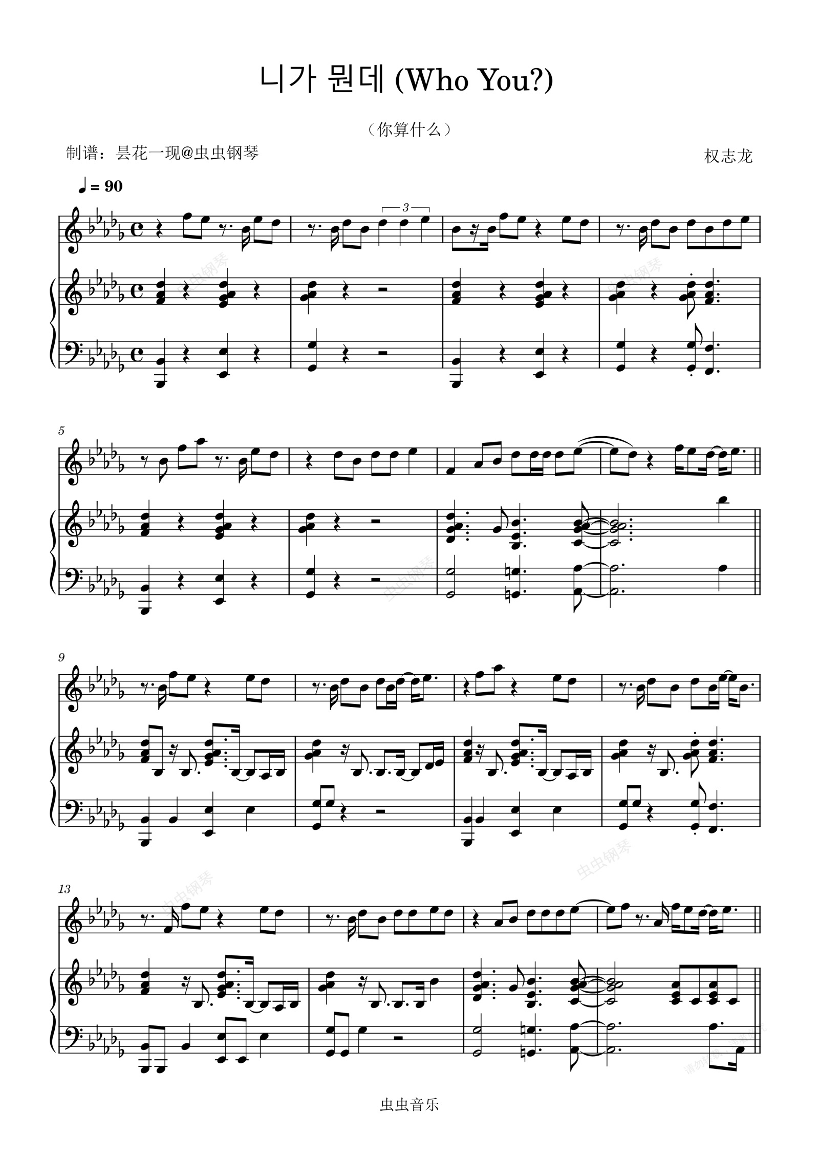 钢琴谱:니가 뭔데 (Who You?) 你算什么-权志龙