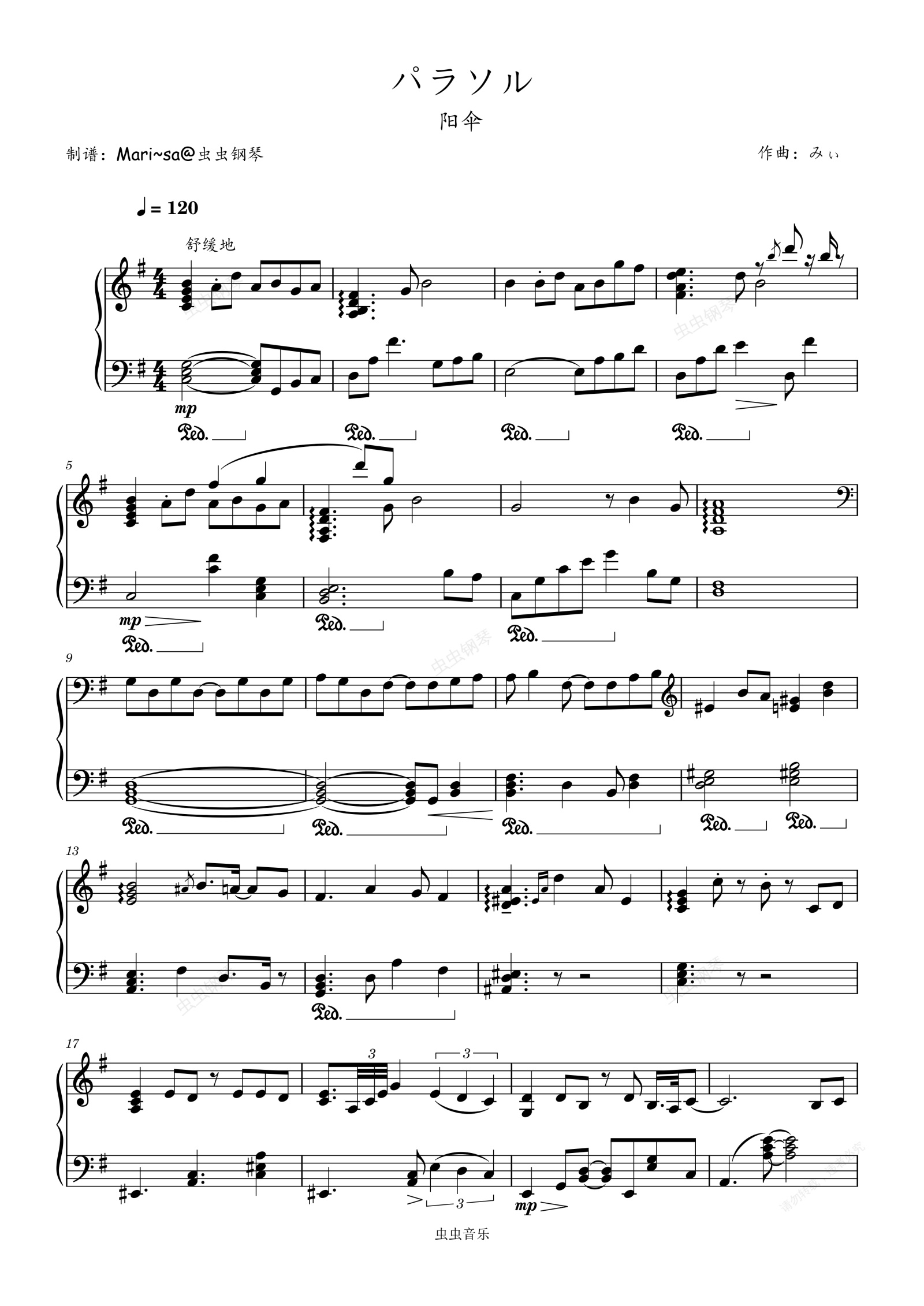 钢琴谱:パラソル(阳伞)