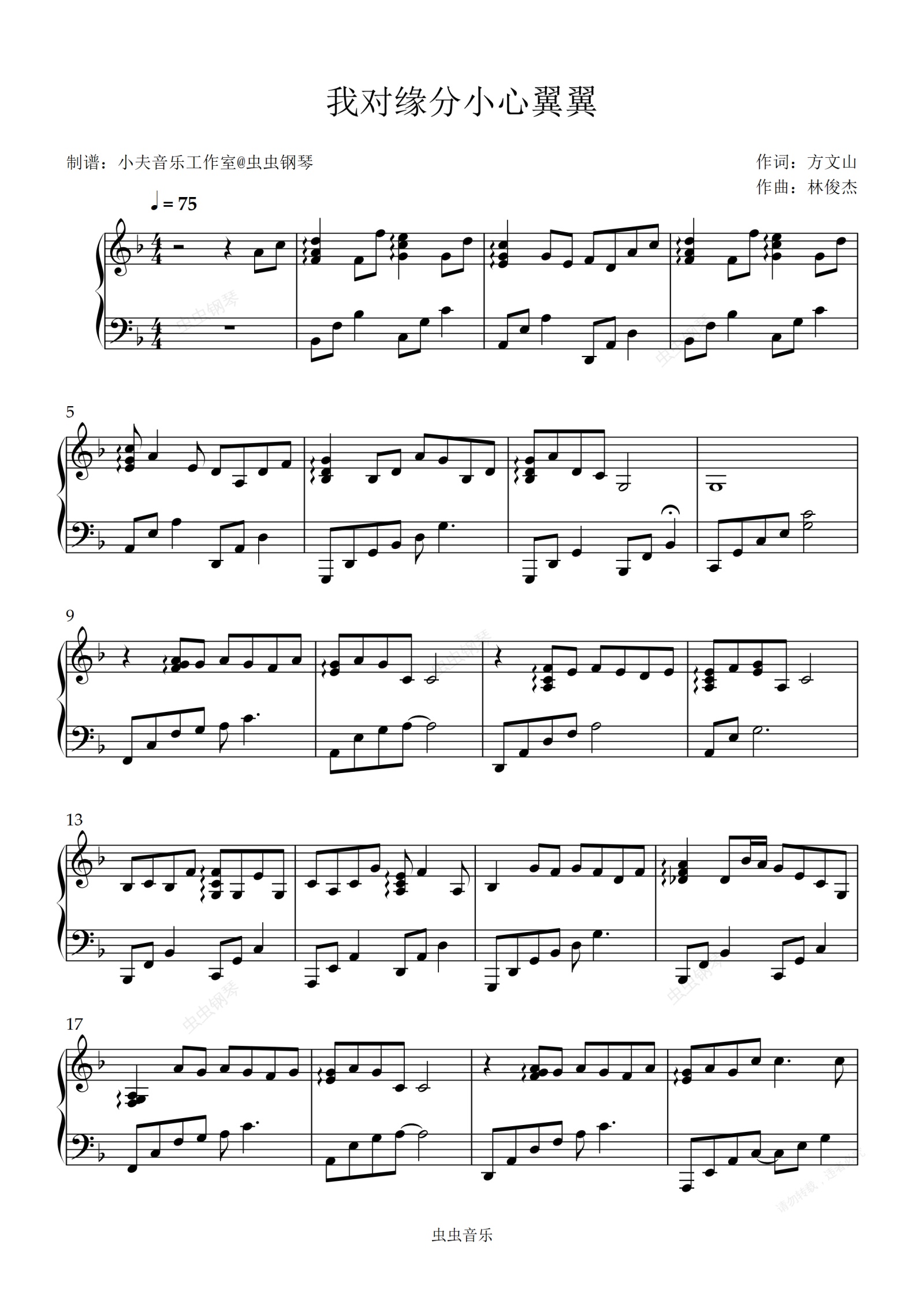 钢琴谱:我对缘分小心翼翼 C调 影视剧 逐玉 主题曲