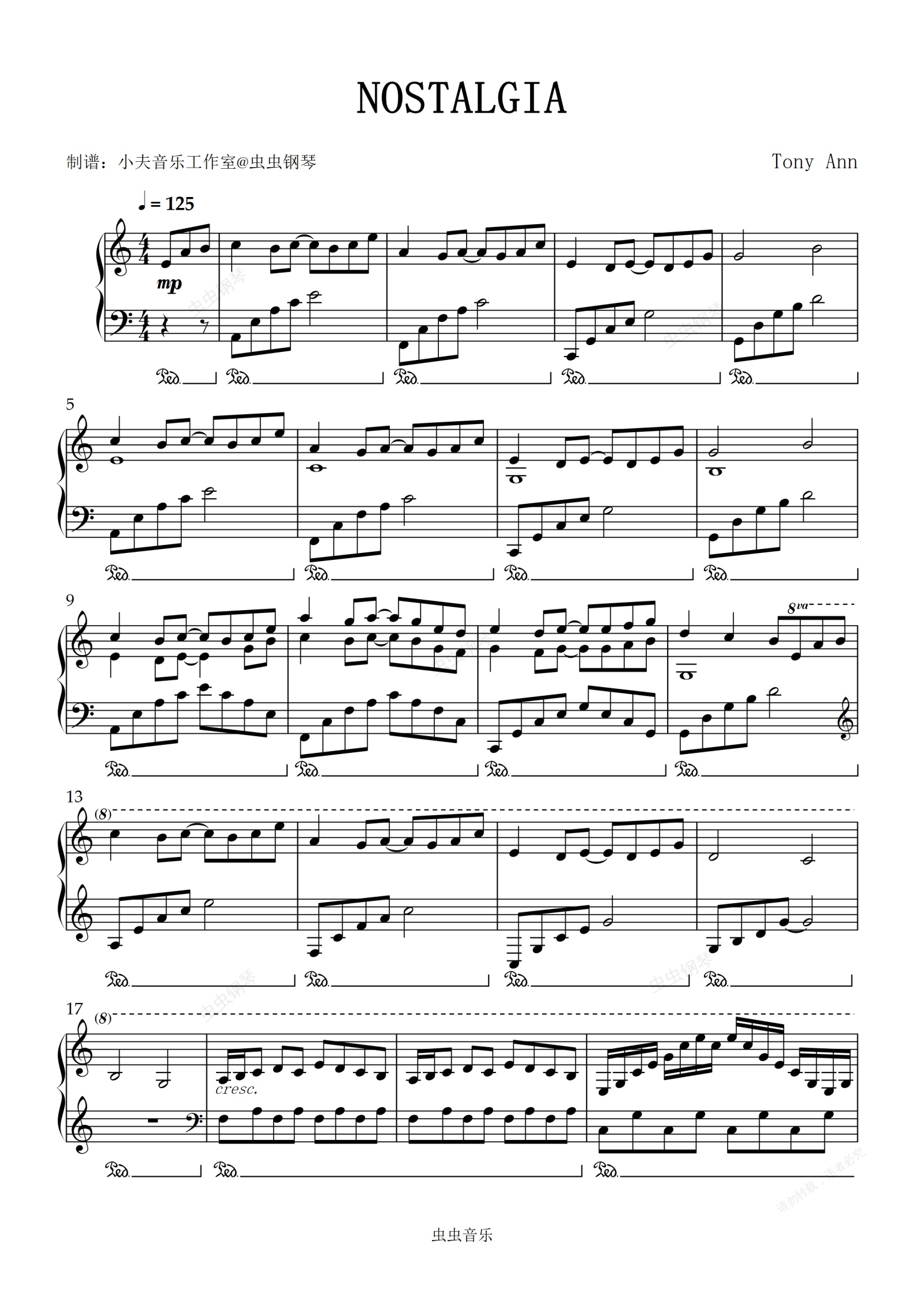 钢琴谱:NOSTALGIA C调