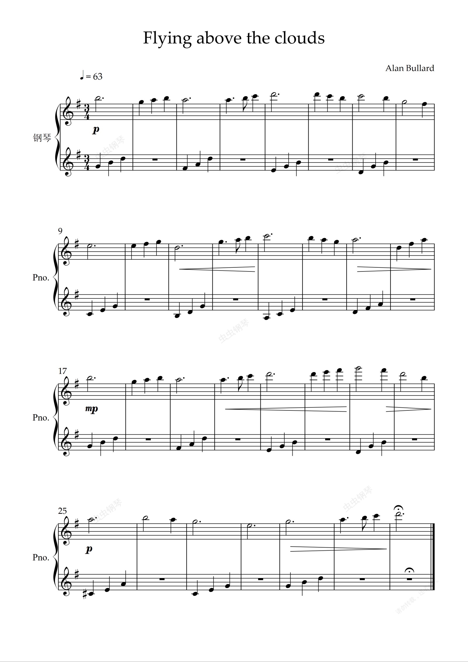 钢琴谱:Flying above the clouds