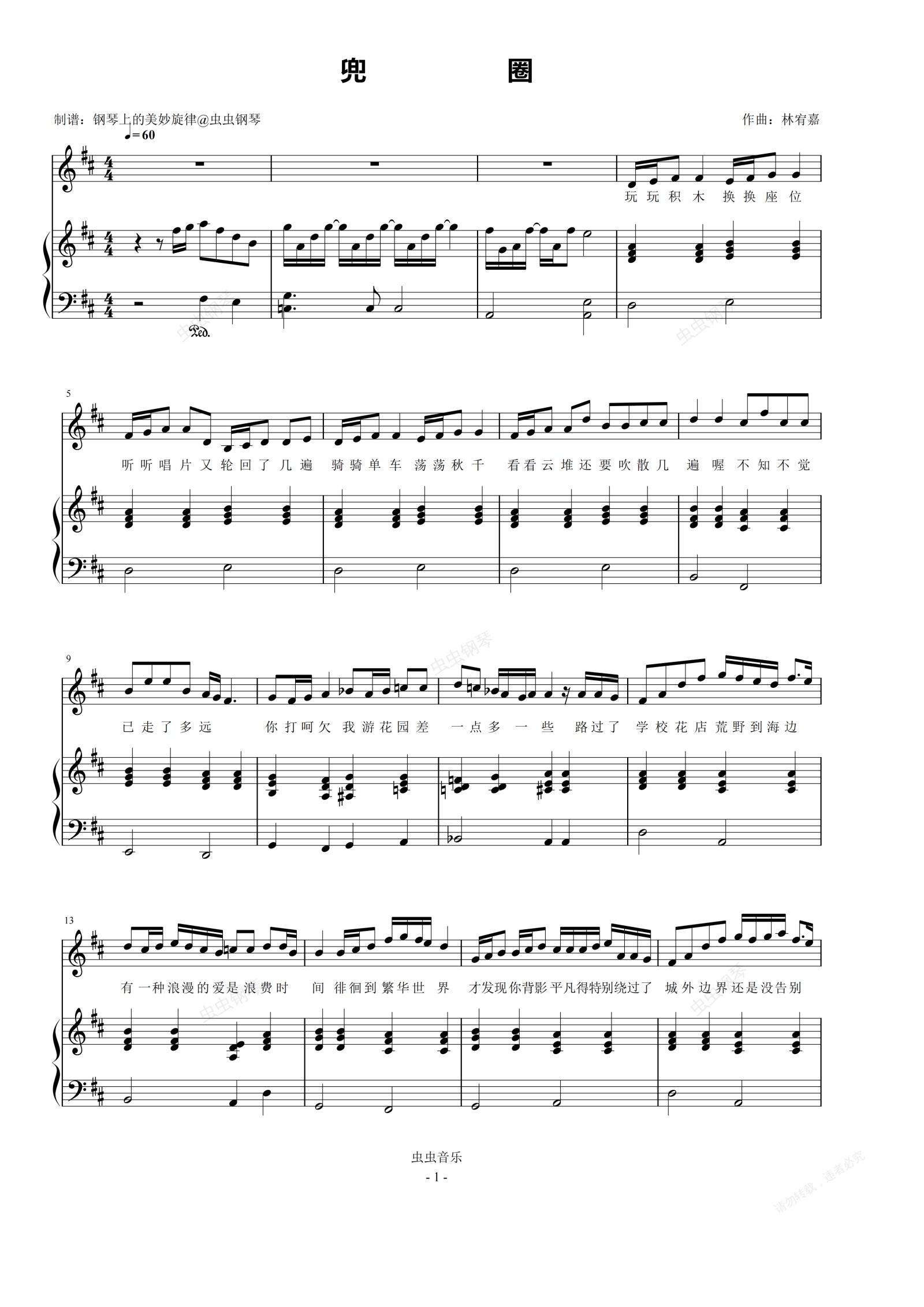 钢琴谱:兜圈 原调简易钢琴弹唱伴奏 带歌词 林宥嘉
